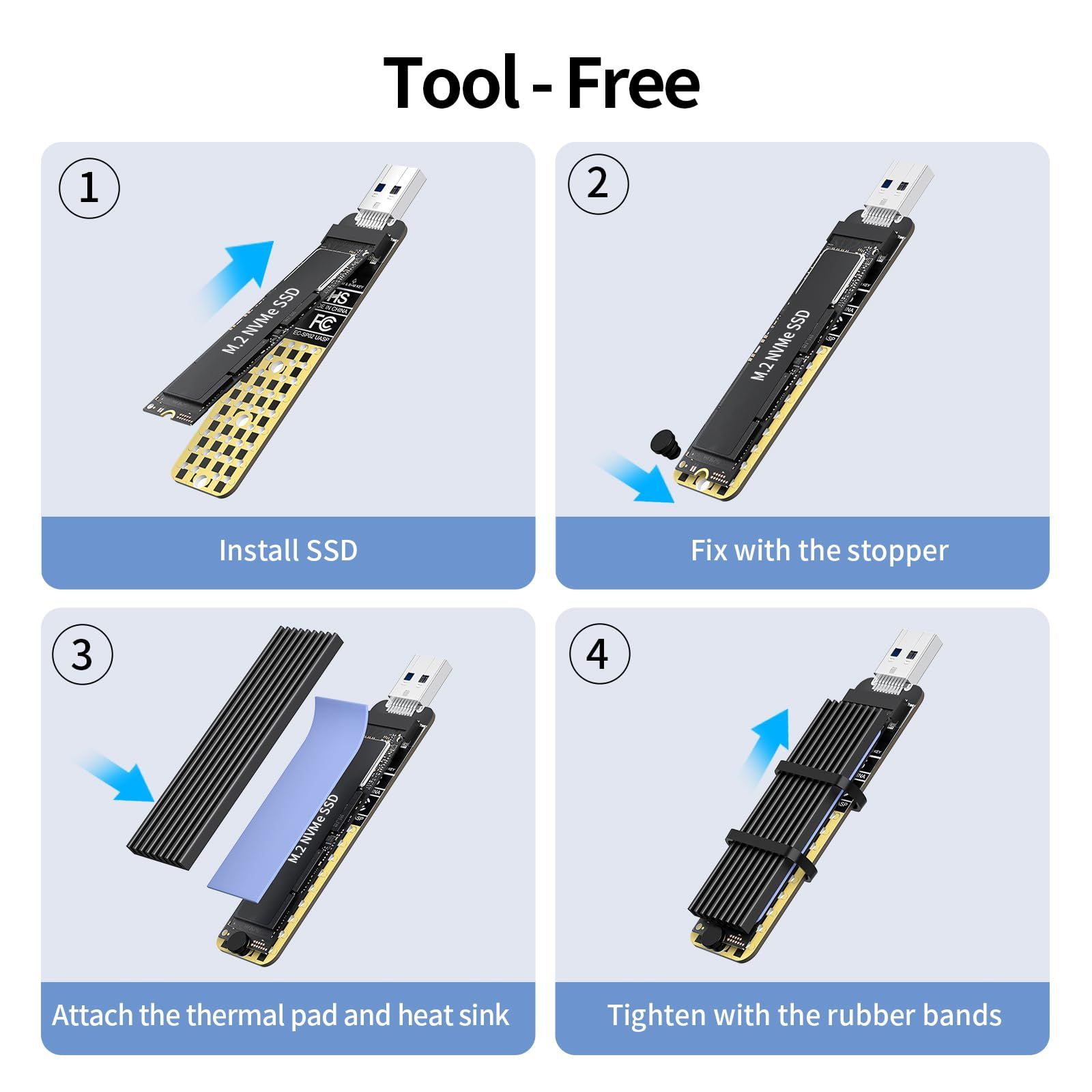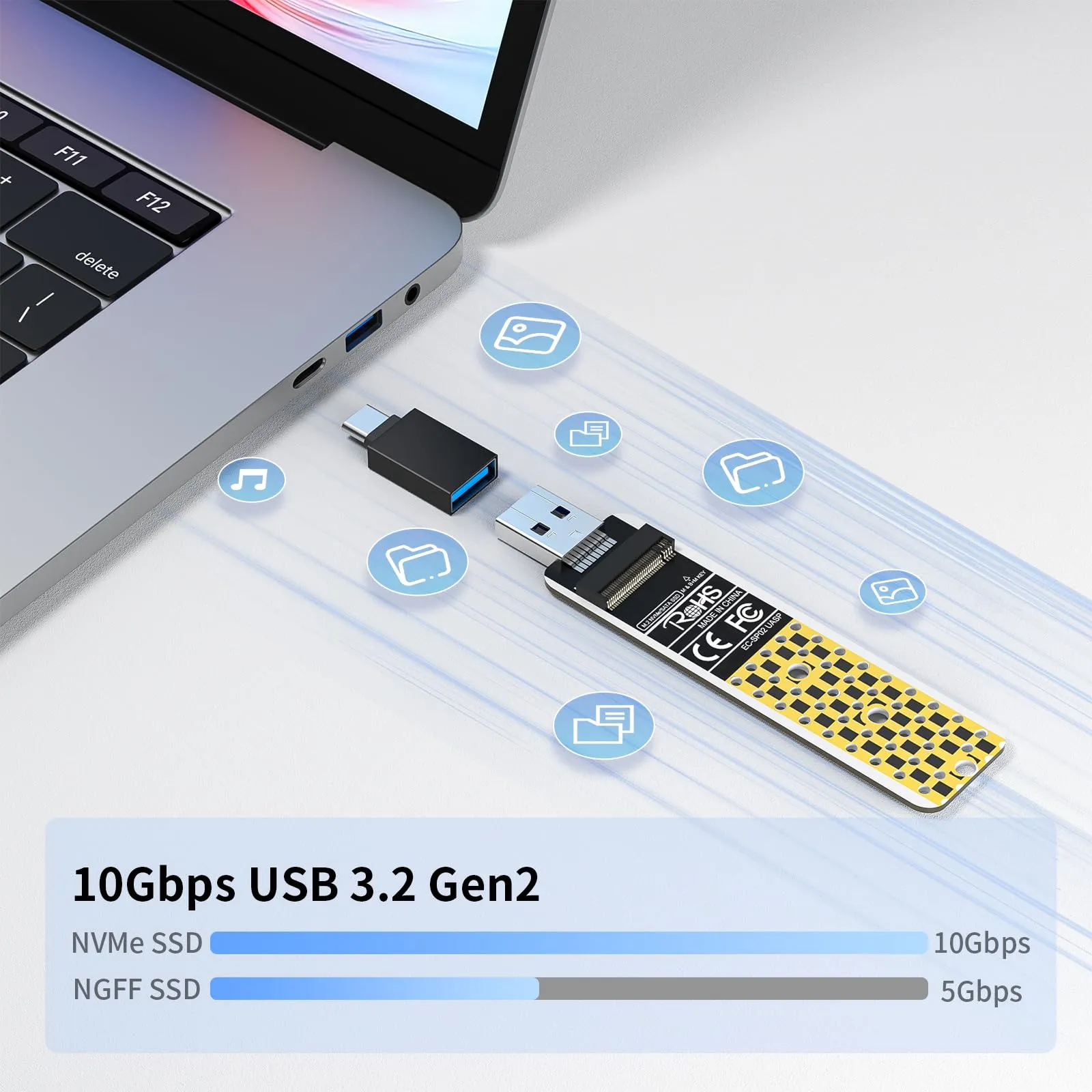 新品 ANYOYO NVMe m2 ssd ケース、10 Gbps USB 3.2 Gen 2 M2 SSD アダプター、M KEY/B+M KEY SSD NVMe PCIe 専用 M.2 ssd ケース、支持 8TB大容量 2242 2260 2280 用