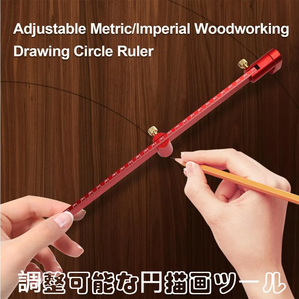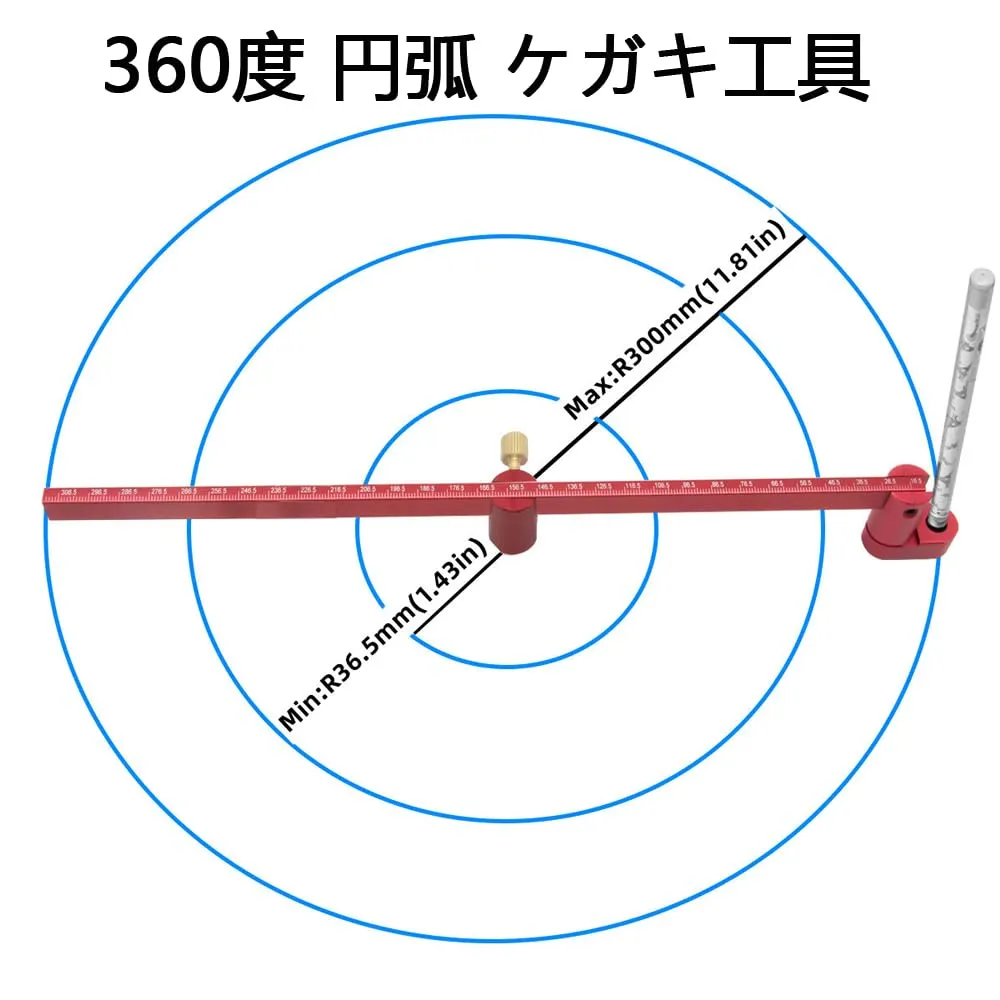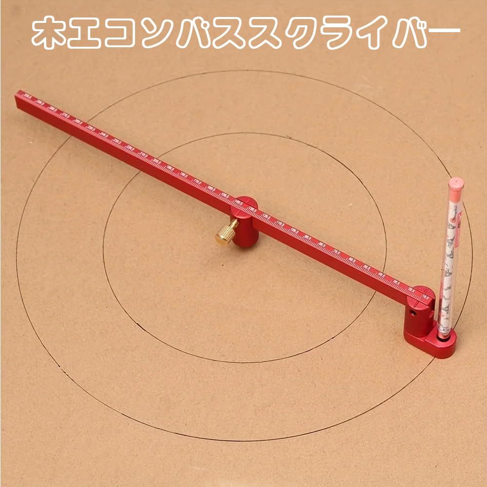 木工コンパススクライバー 大型コンパス 360度 円弧 ケガキ工具 木工スクライビングサークル 大工マーキングゲージ アルミニウム合金 調整可能な円描画ツール 高精度 目盛りあり 大工ケガキ工具 木工 職人 建築家 エンジニア用 300mm