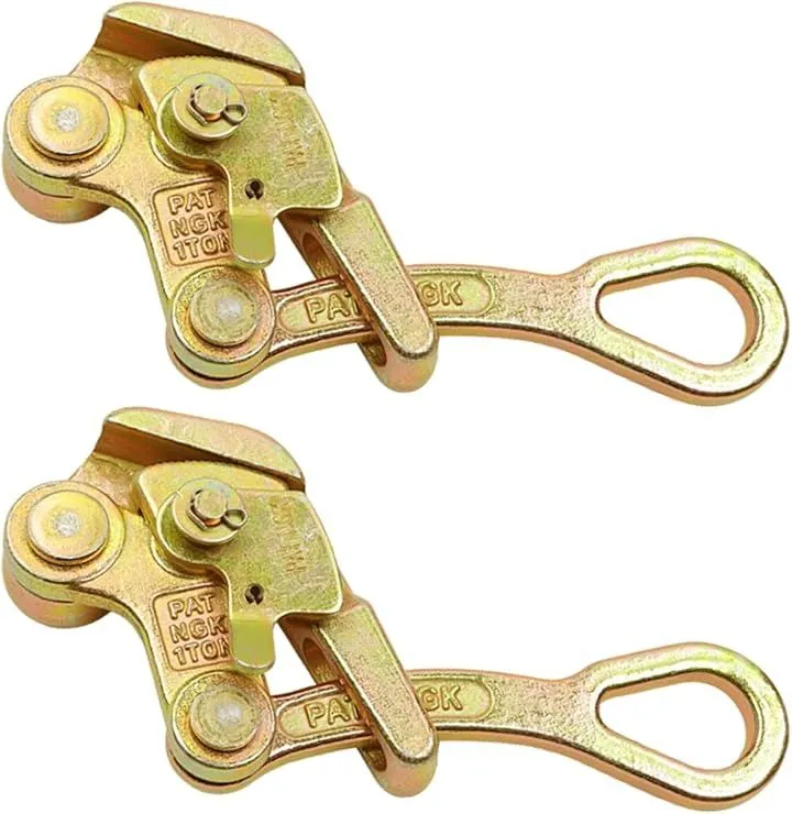 RiNan. カムラー 掴線器 配線通し クランプ 通線 ワイヤー 工具 クリップ 張線器 (ゴールド, 1t 2個セット)