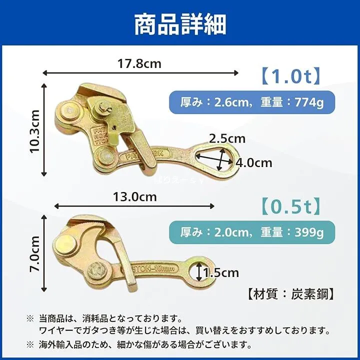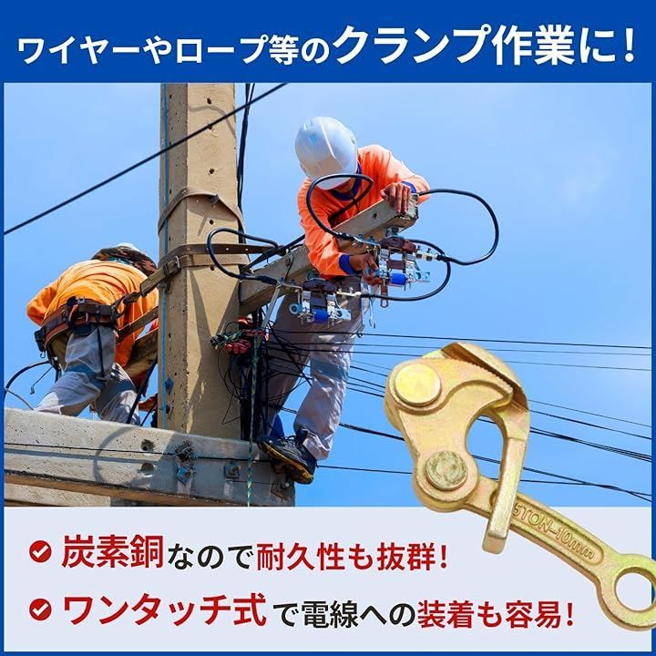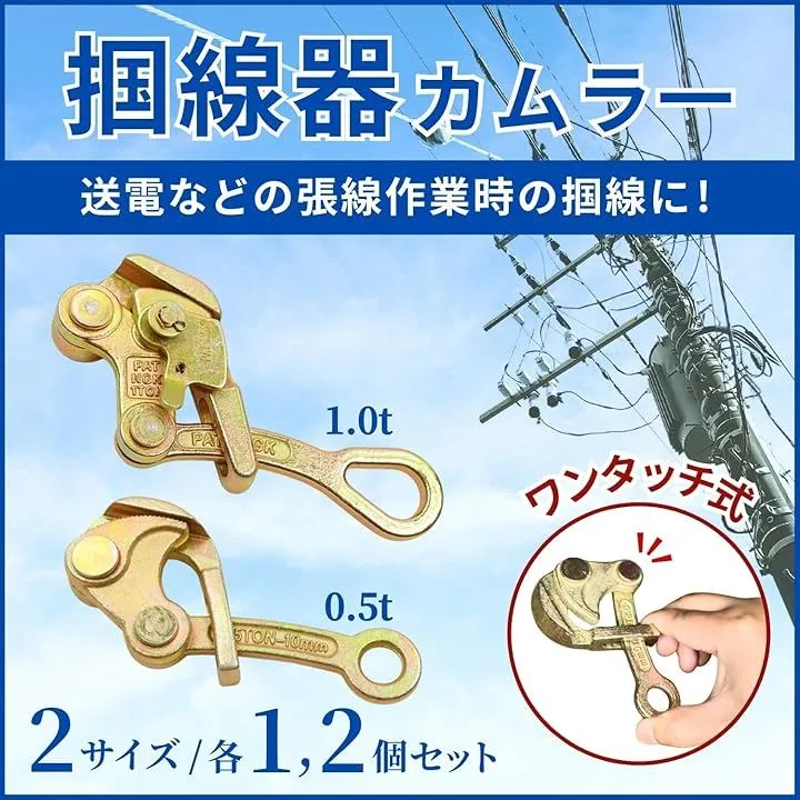 「多用途に使える便利な工具」 RiNanのカムラー(掴線器)は、鋼撚線やワイヤーケーブル、針金をしっかりとクランプするための工具です。