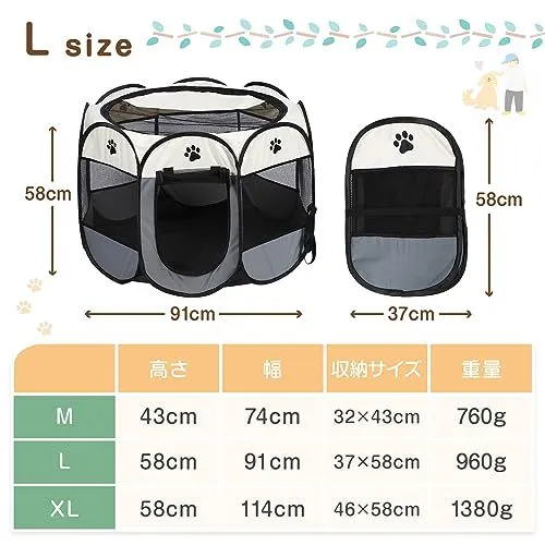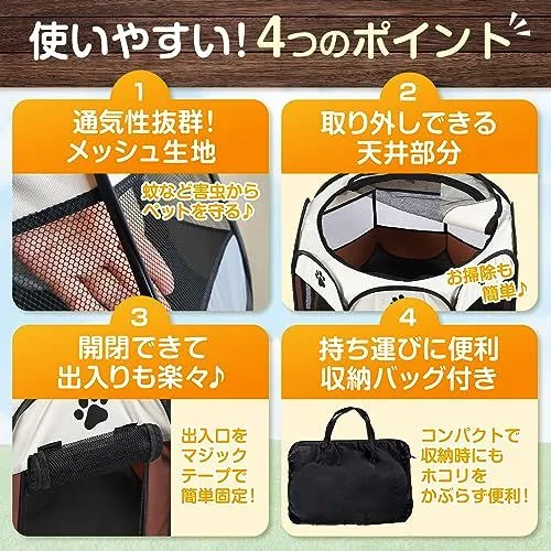 HinaHima 折りたたみ式 ペットサークル 収納バッグ付き 組み立て不要 猫