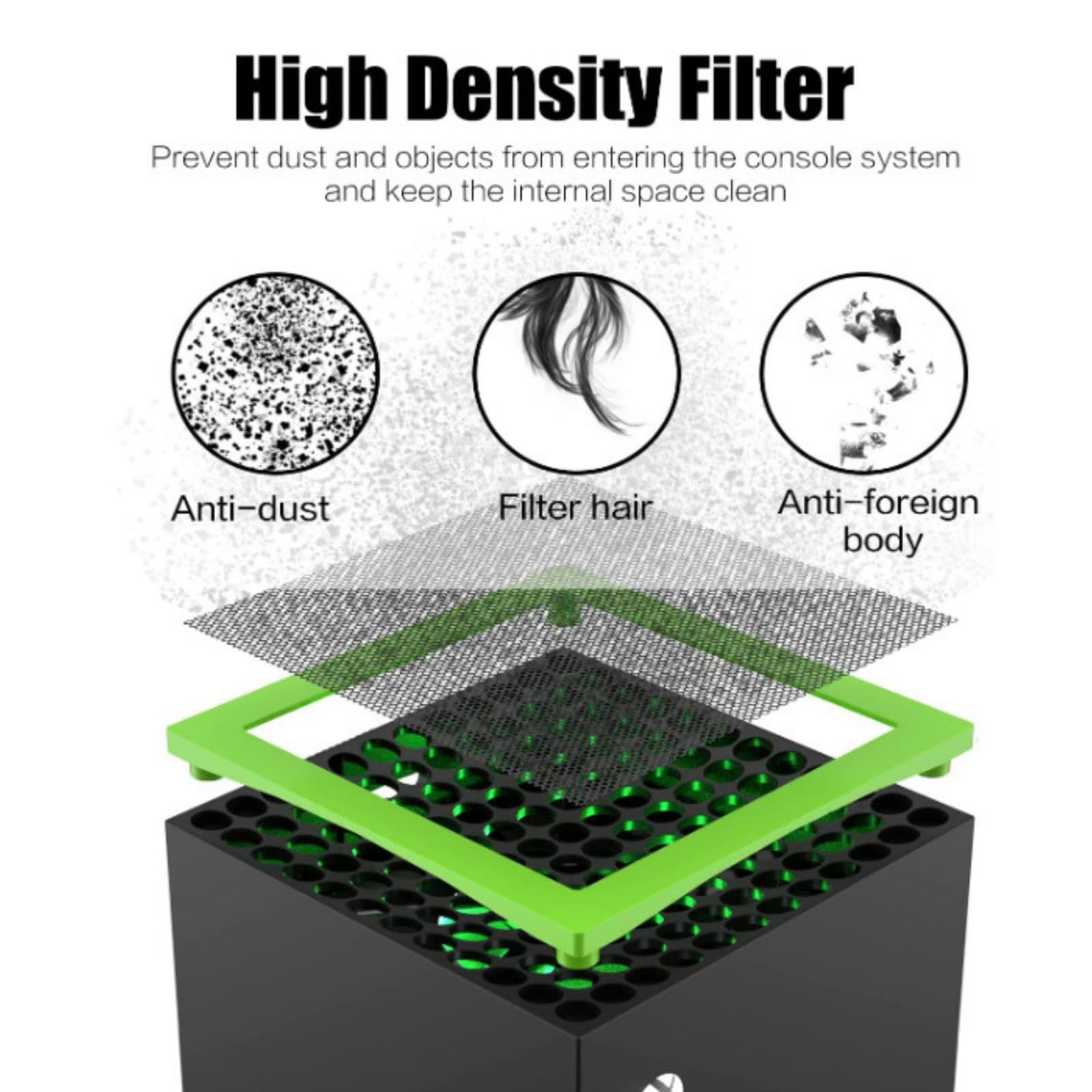 【Series X専用設計】 コンソールにぴったりフィットする防塵フィルターで、ファンや通気口へのホコリの侵入を効果的にブロックします。スタイリッシュな見た目と実用性を両立。
