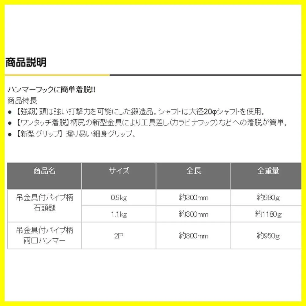 【特価セール】土牛産業土牛吊金具付パイプ柄石頭鎚0.9kg02987
