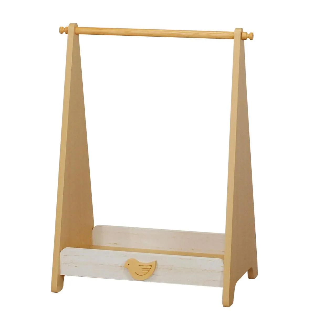 PatternName:ハンガーラック 白井産業 ハンガーラック キッズ 子供用 衣類収納 低め 木製 リビングに置ける北欧テイスト かわいい 鳥のオーナメント ナチュラルブラウン 幅63.9 高さ83.7 奥行37.6cm LAK-8555 ランドキッズ