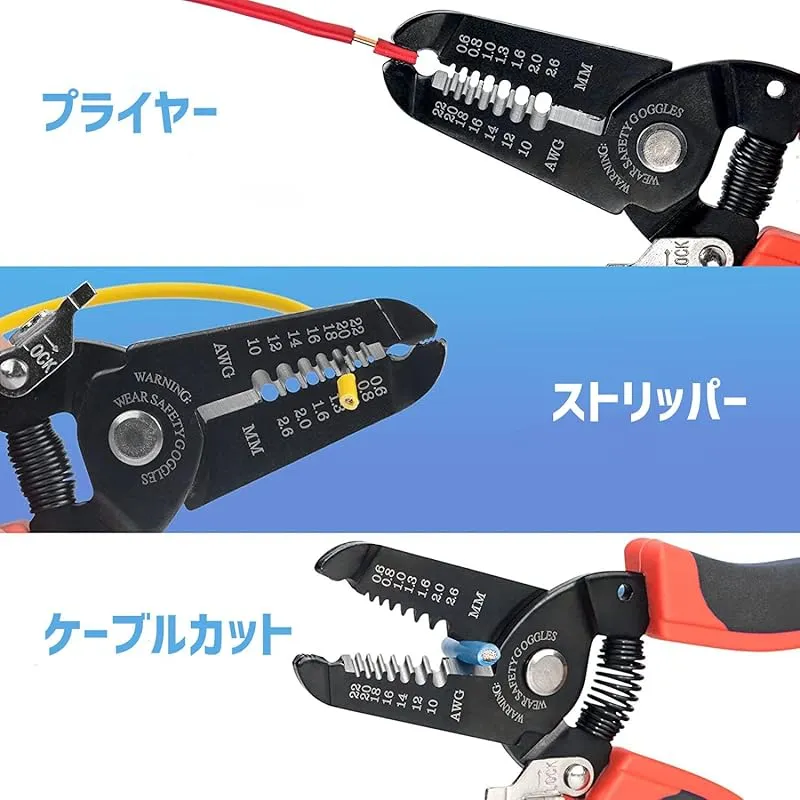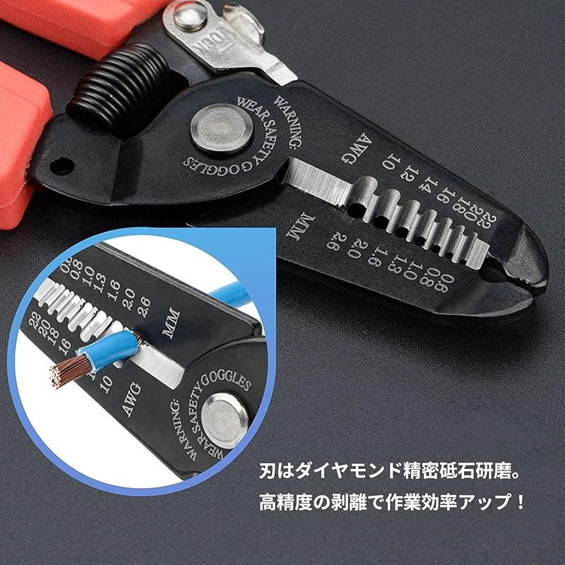 【商品説明】 ストリップサイズ: AWG22-10(Φ0.6-2.6mm) 切断の範囲: 30mm最大 長さ: 180mm 重さ: 130g