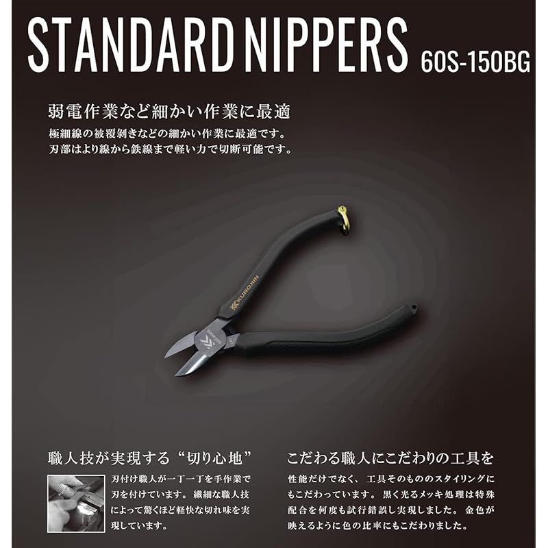 【迅速発送】フジ矢 スタンダードニッパ 黒金 バネ付き 60S-150BG 0