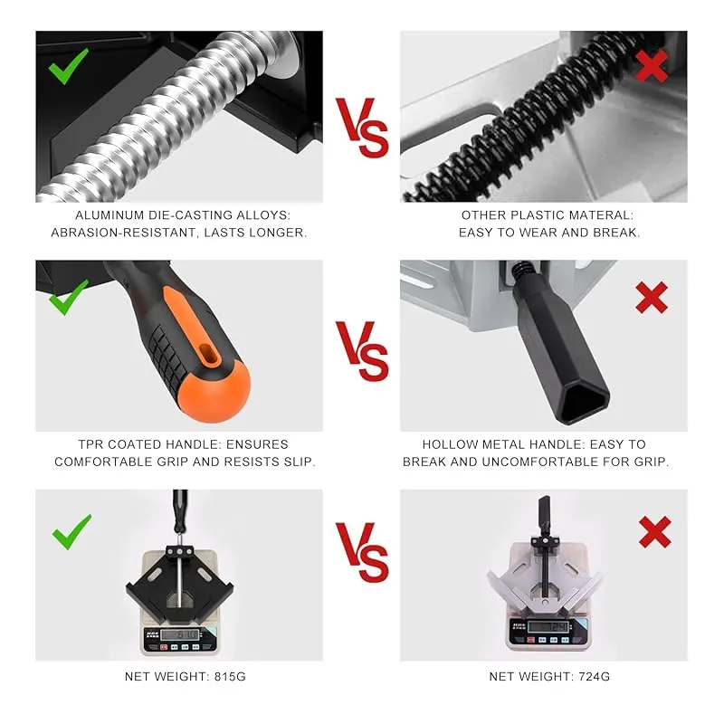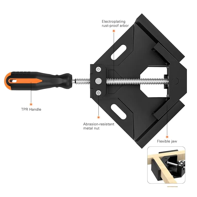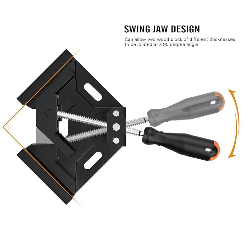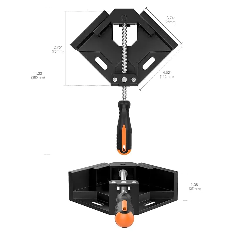 【商品概要】 耐久性のある直角クランプがプレミアムアルミ合金のダイカスト材で作られています。 厚さの異なる2枚の木製ブロックを90度の角度で結合できます。 ワークを正確に整列保持するための調整可能な回転ジョー付きのゴム引きシングルハンドル。 ソリッドとアンチスキッドは即座にセットアップして素早く安全にするのに役立ちます。 スイングジョーのデザイン、シングルハンドルジョーの双方向回転を調整することができます。 精密な直角締め付け工具で、木工労働者、ハンディーメン、DIYにとって不可欠です。 90°コーナージョイント用クランプ装置として使用できます。 仕上げ、釘打ち、木工、溶接、ネジ止め、キャビネット、ボックス、写真フレームの作成に最適です。 最大固定板幅:70mm;顎幅: 90mm;顎の深さ:35mm;鋼棒、金属管、木材、厚いガラスなどのような材料をクランプすることができます。