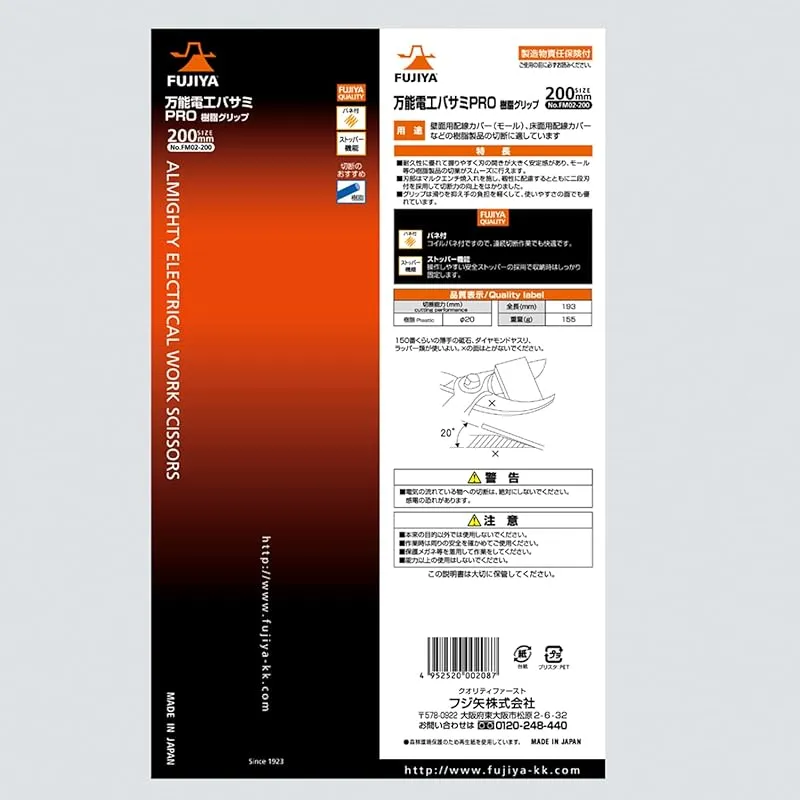 【迅速発送】フジ矢(Fujiya) 万能電工バサミPRO (バネ付) モール 200mm FM02-200 0