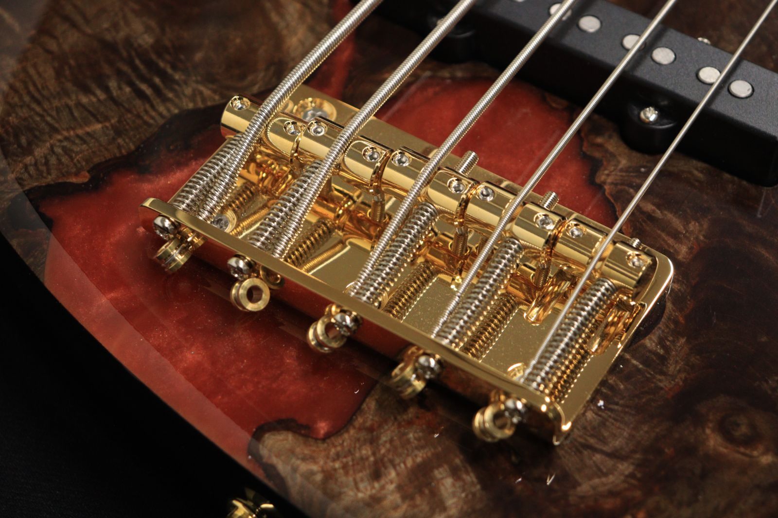 【ボディスペック】 ボディー材:アルダー2P TOP材: Stabilized Resin Hybrid ネック材 :メイプル板目 指板材 :インディアンローズ フレット数: 21F フレット :Jescar 57110-ss ポジションマーク:クレイドット 指板R(ラディアス): 10-14R グリップ形状 :Mid C プリアンプ :なし(Passive) PUレイアウト: JB PU :Infinite オリジナル PU 60's コントロール:2Vol/1Tone ブリッジ :GOTOH 205B-5 Gold ペグ:GOTOH GB10 Gold パーツカラー :ゴールド 付属品:ギグバッグ・保証書 本体重量:4.63kg