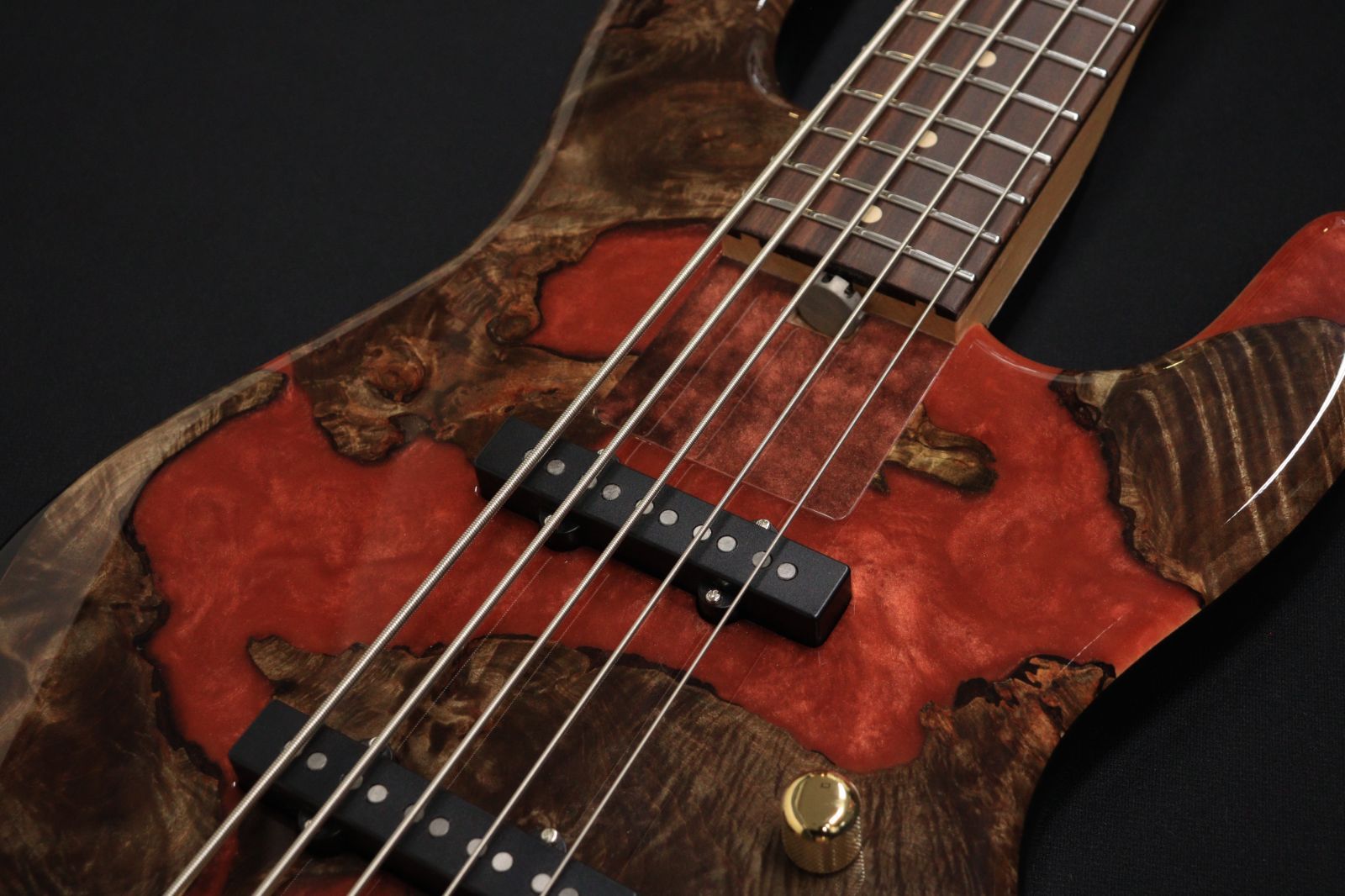 ※スタビライズドウッドの特性上、ボディトップの木部・レジン部に凹凸が見られる箇所がございます。