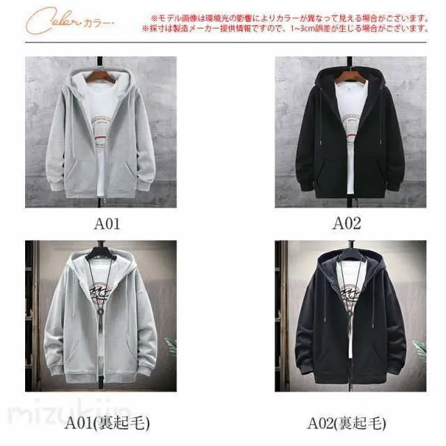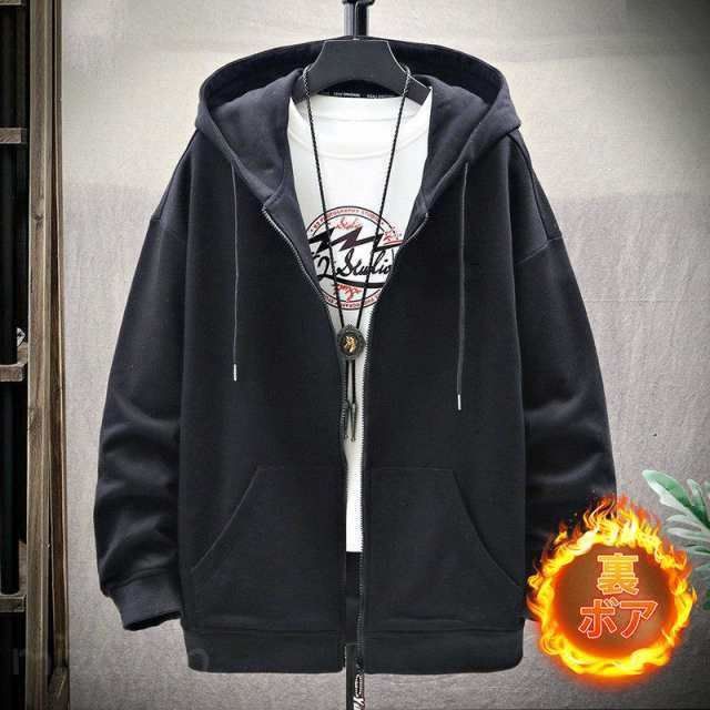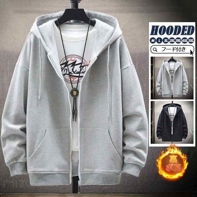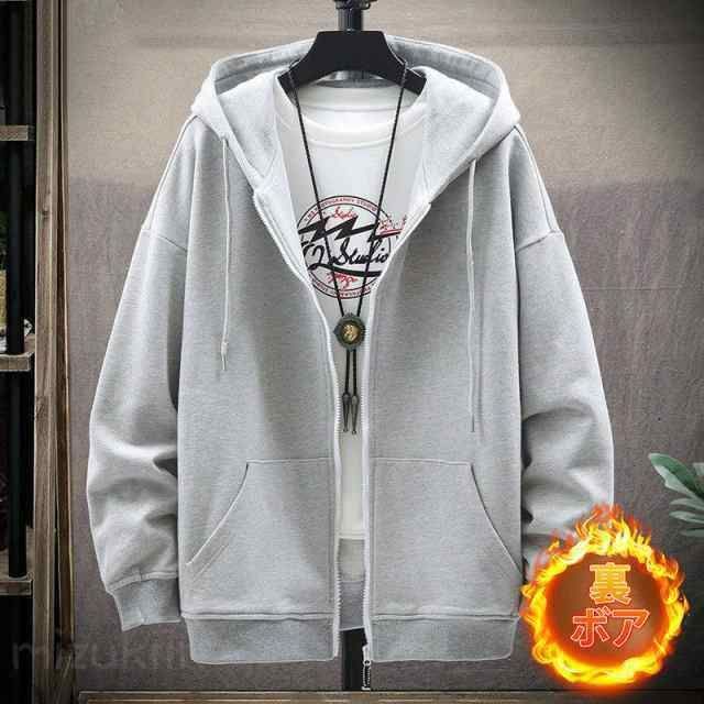 パーカー メンズ 長袖 フード付き 薄手 厚手 裏起毛 裏ボア ジップアップ ジャケット カーディガン ビッグシルエット マウンテンパーカー
