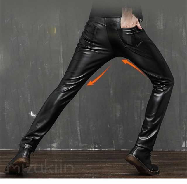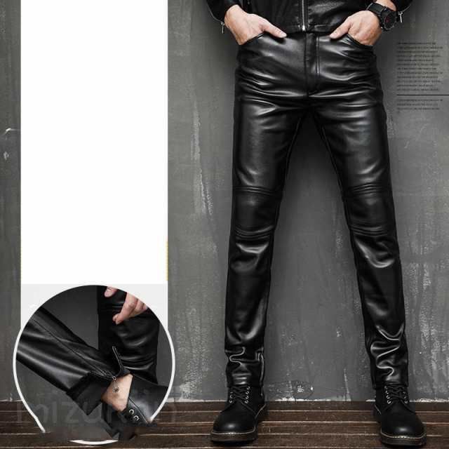 レザーパンツ メンズ 革パン PU レザー バイクパンツ ロングパンツ 細身 大きいサイズ スキニー ストレッチ ライダース 防風 カジュアル お