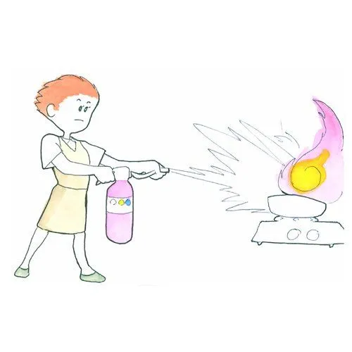 加圧式の特長である高い放射圧を持ち、その勢いで薬剤を火元に放射。初期消火に力を発揮します。