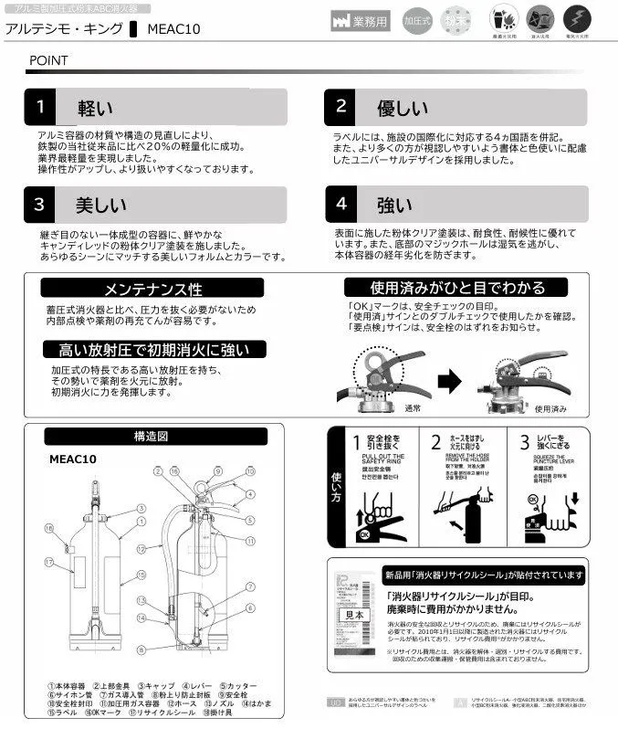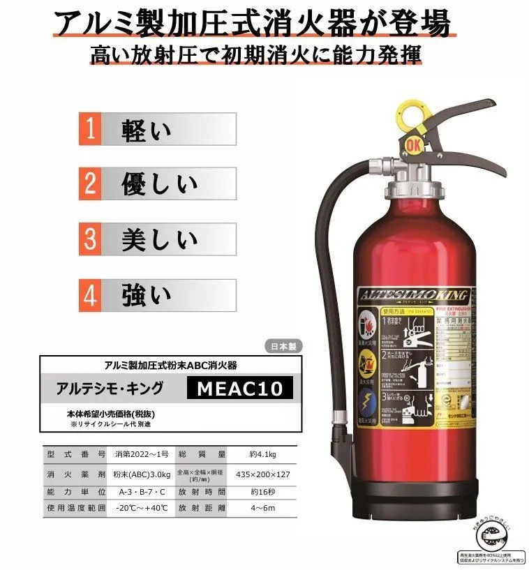 ESCO エスコ 3.0kg 加圧式ABC消火器 (4ヶ国語対応) EA999MH-10A モリタ宮田工業 型番 MEAC10 火災 消火 火事 緊急 重要 常備品