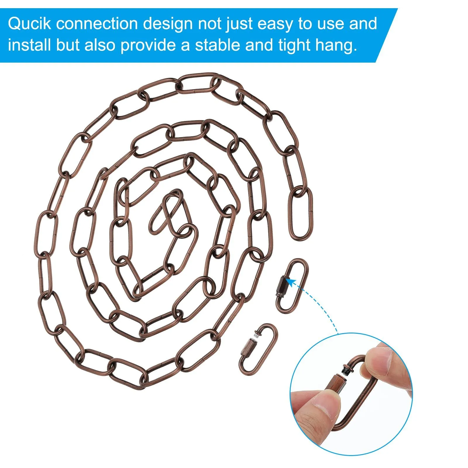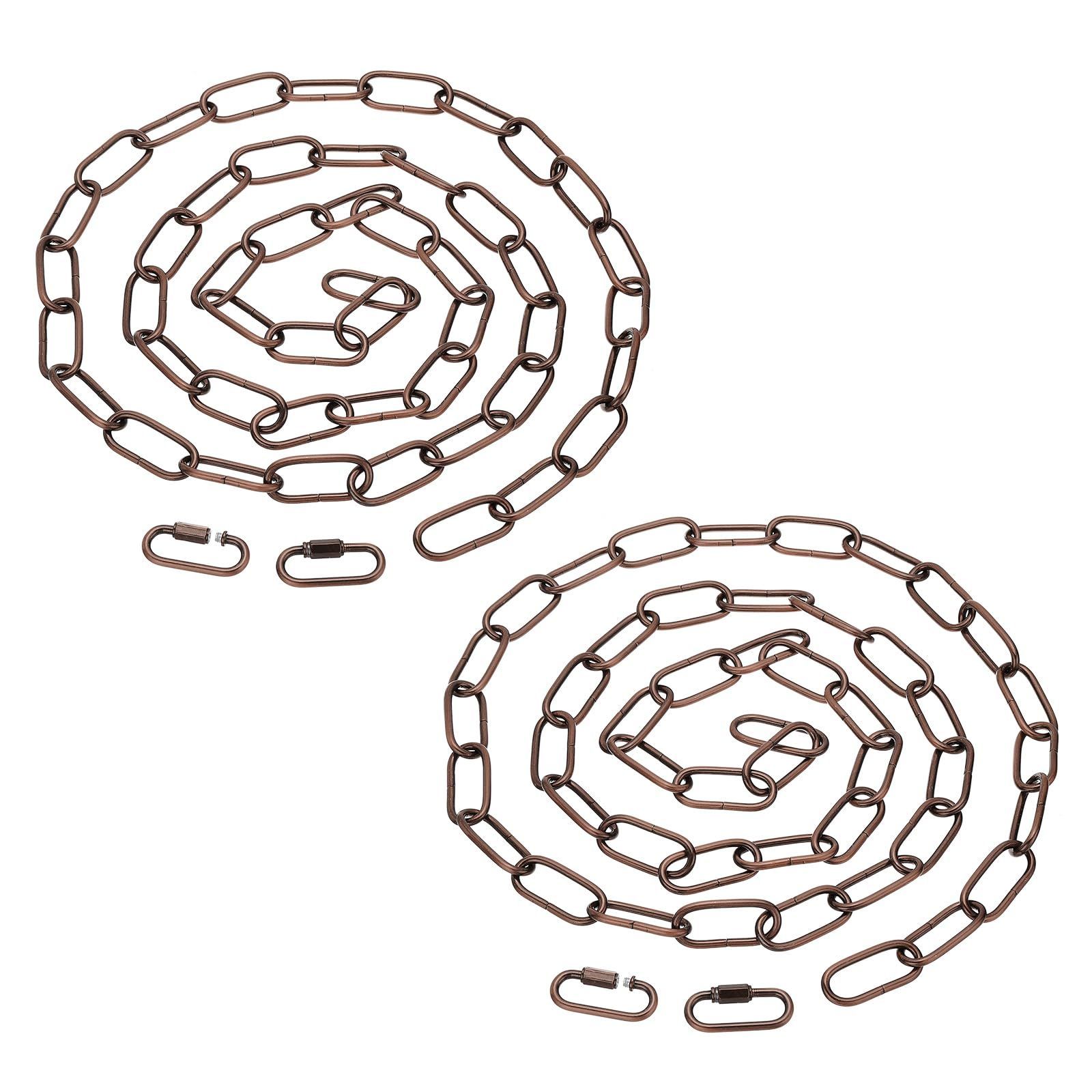 PATIKIL 6フィート照明用吊りチェーン 2個の金属ループチェーン プラントポットシャンデリアペンダントライト用クイックリンクスクリューロックコネクター レッドブロンズ
