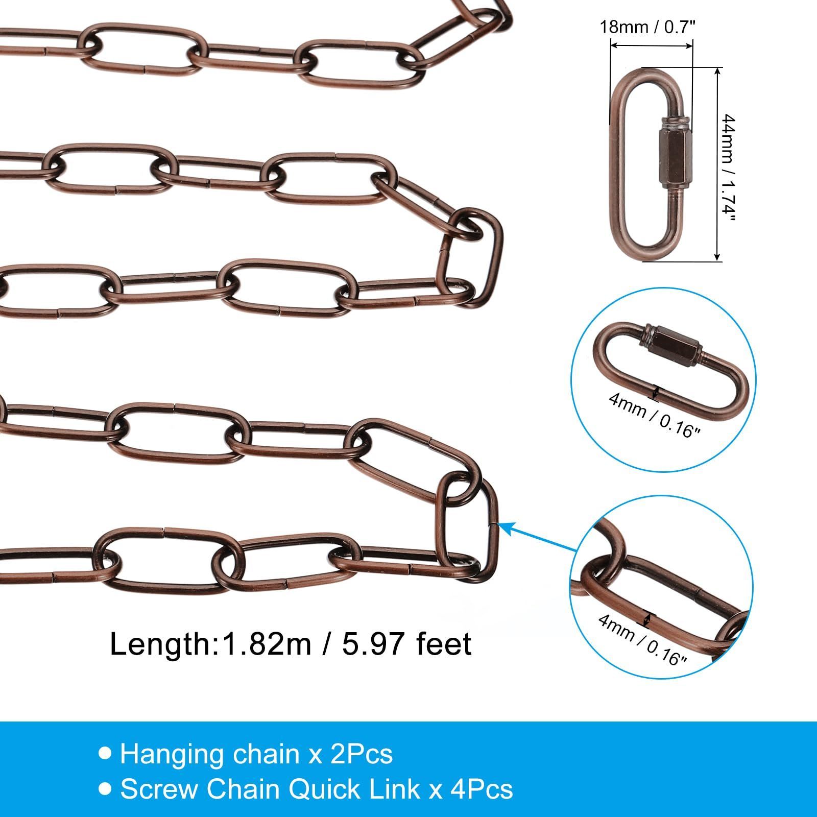 仕様:カラー:レッドブロンズ;素材:鉄;チェーンリンクサイズ:44mmx18mmx4mm / 1.74 x 0.7 x 0.16;チェーンの長さ:1.82メートル / 5.97フィート;チェーンの最大荷重:44ポンド;梱包リスト:吊りチェーン2個、クイックリンクコネクター4個