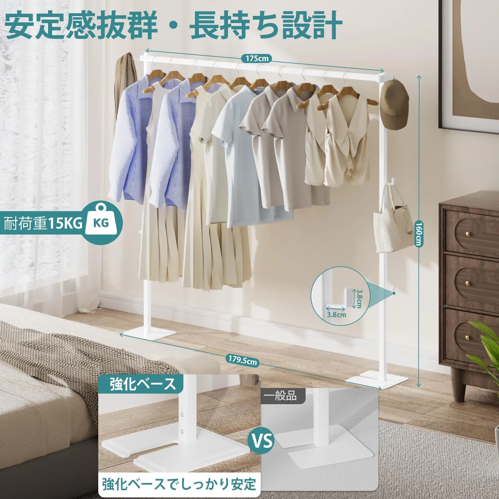 頑丈で安定、長持ちする部屋干し ラック。大容量で5人家族の洗濯物も余裕で干せます。加重された底座で安定性抜群、耐荷重15kgで室内干しでもしっかり保持。場所を取らず大量に干せるため、洗濯のストレスを軽減します