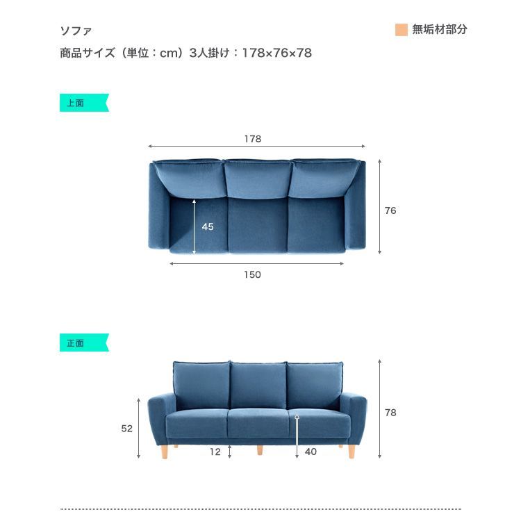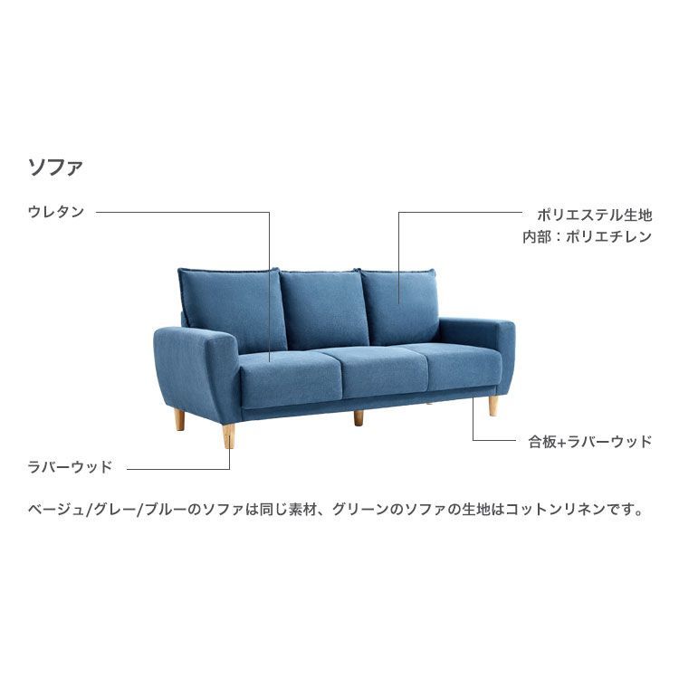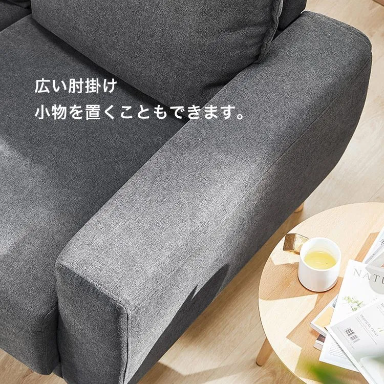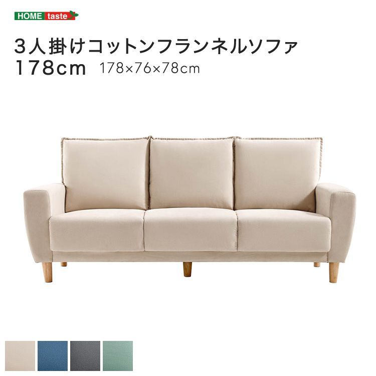 【商品説明】 この商品は、広い座面と快適な肘掛けが特徴の3人掛けソファです。肌触りの良いコットンフランネル生地を採用し、柔らかな座り心地でゆったりとしたくつろぎを提供します。ラバーウッドと合板フレームの安定感が小さな空間にも適したデザインです。