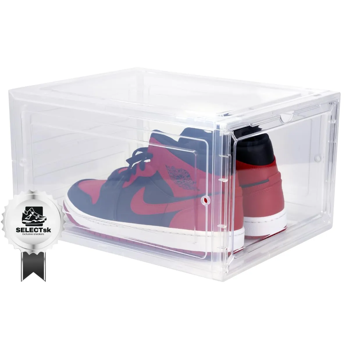 多機能シューズケース:ハイカットスニーカーやナイキ限定品など、大切なコレクションを美しく展示。クリアケースで隙間収納にも適し、どの角度からも鮮明に見えます。フィギュアや文房具の保管にも理想的。サイズ: