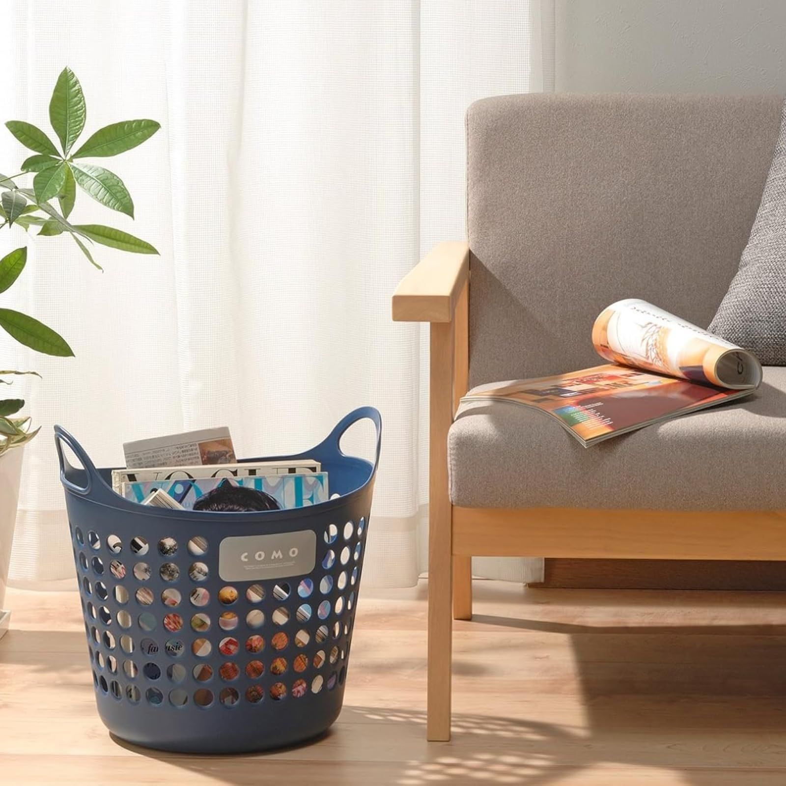 イノマタ化学(Inomata-K) バスケット コモバスケット M 2個セット ネイビー 日本製 万能 洗濯 カゴ 柔らか素材 多用途 ランドリー キッチン リビング おもちゃ アウトドア 雑貨 収納 レジャー スポーツ おしゃれ シンプル 9475