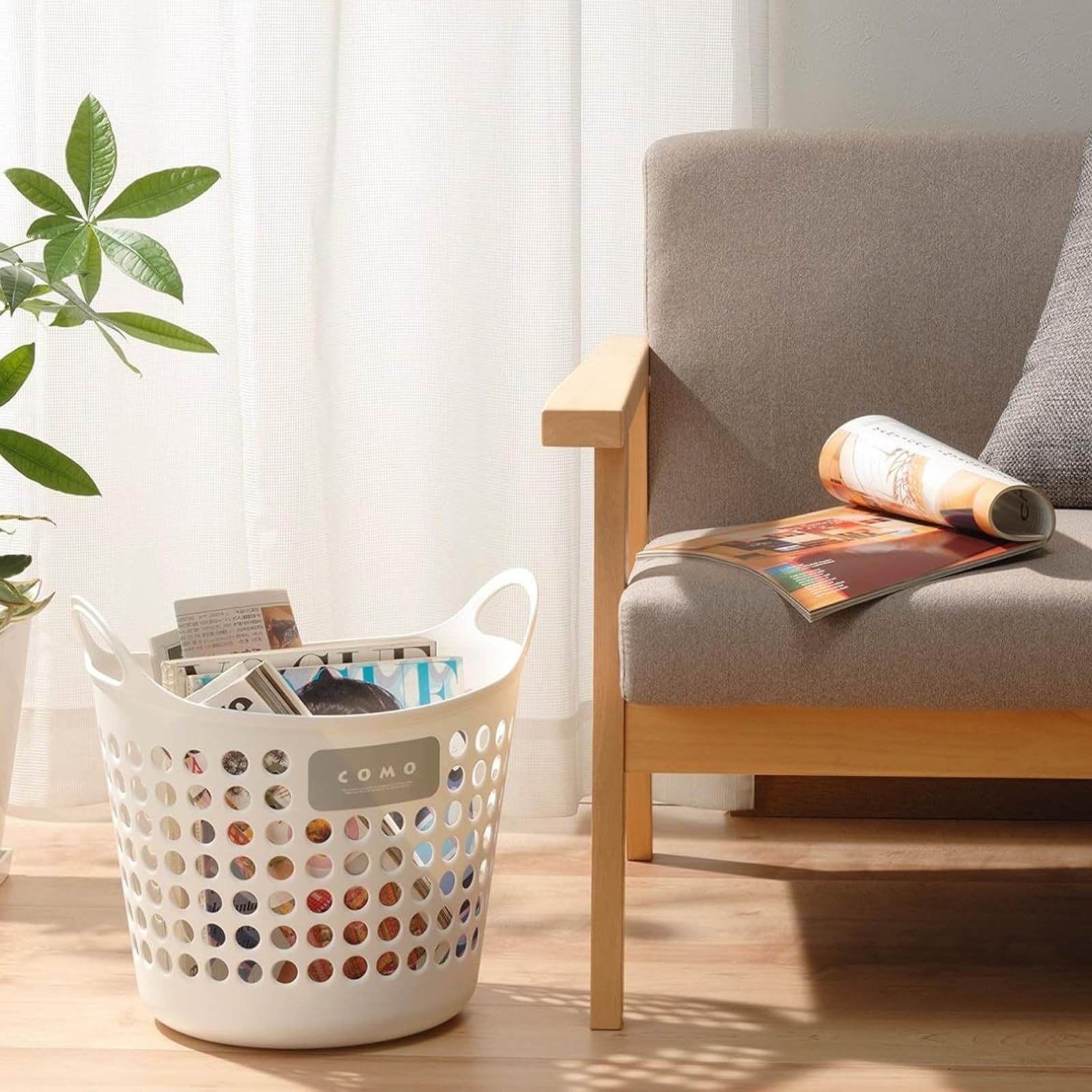 気軽に入れて持ち運べる柔らか素材のコモバスケット。