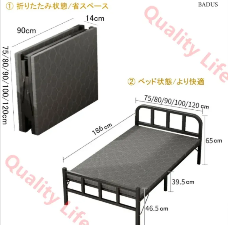 折りたたみベッド おりたたみベッド コンパクト折り畳み シングル 簡易ベッド 幅75/80/90/100/120cm ベッド マットレス付き 小型 一人暮らし 省スペース 組立不要 介護用 仮眠 来客 簡単収納