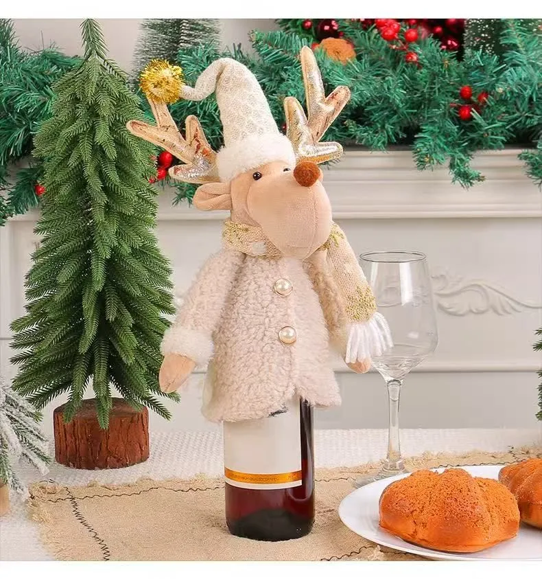 クリスマスサンタ人形ワインボトルカバー 1点 全3種類 かわいい赤ワインボトル装飾袋 ホリデーテーブルパーティーお祝い 新年 ディナー テーブル デコレーション クリスマス