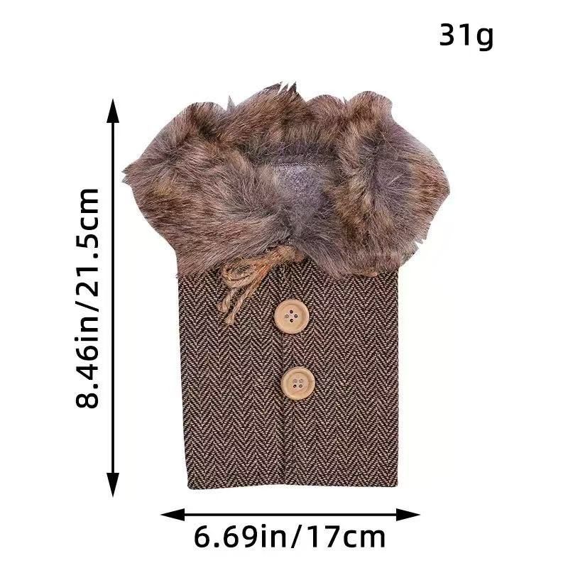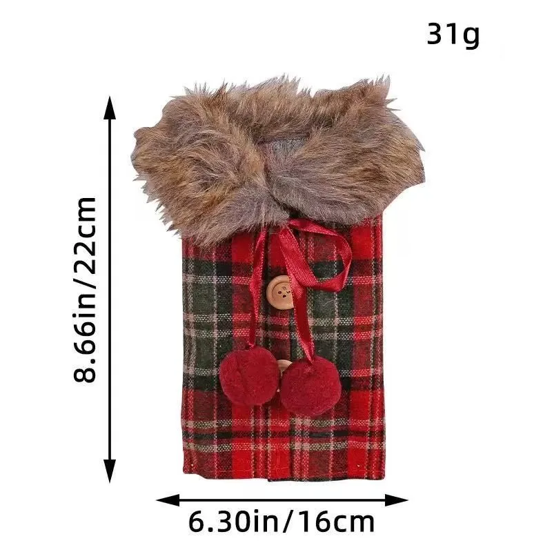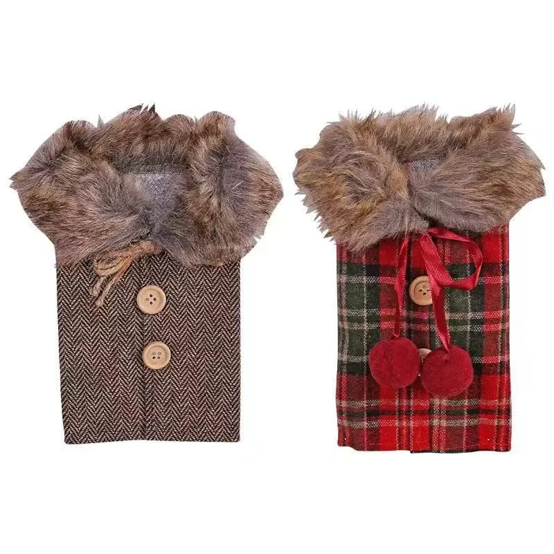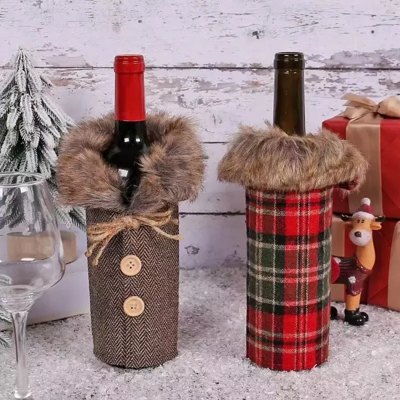クリスマス ワインバッグ 1点 全2色 ボトルカバー チェック柄 ブラウン ファー付き レッド 赤 ワインボトル装飾袋 ホリデーテーブルパーティーお祝い 新年 ディナー テーブル デコレーション クリスマス