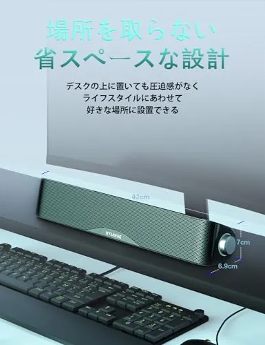 【メリット】最適化設計と贅沢なスピーカーユニット構成により、豊かな低音からクリアな高音までを再生することできます。ベッドルームに最適なコンピューターサウンドバーです。