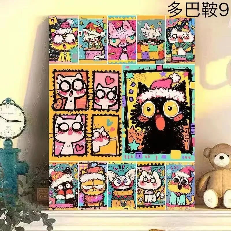 43.多巴鞍 数字油絵 小さい 塗り絵 パズル塗り絵 数字キット塗り絵 DIY diy デジタル油絵 手芸キット 水海 絵画 絵具付 数字絵 大人の塗り絵 油絵 ペイントバイナンバー 推し 推し活 30x40cm フレームなし 猫 ネコ ねこ 黒猫 動物 ワンちゃん 花