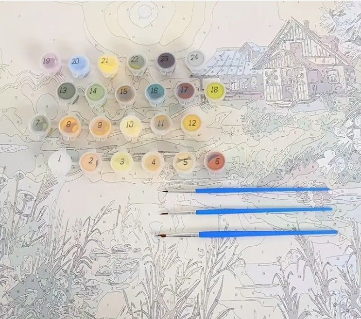 DIY 数字油絵 塗り絵 手芸キット 水海 木 景色 絵画 絵具付 数字絵 大人の塗り絵 油絵 ペイントバイナンバー 推し 推し活 趣味