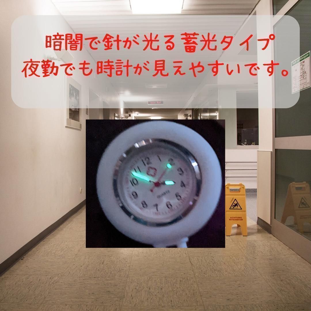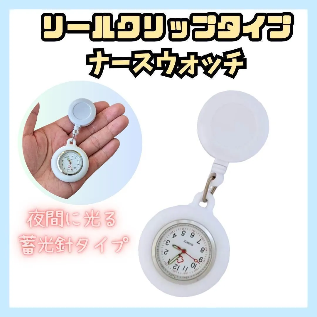 【新品・クリックポスト】ナースウォッチ リールクリップ 蓄光針 ホワイト 時計 看護師 介護 医療 実習