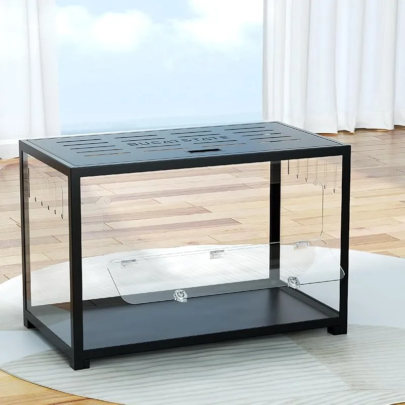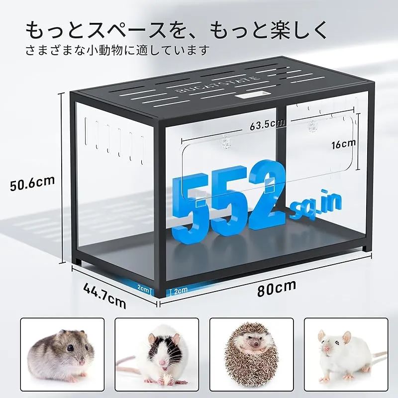 BUCATSTATE ハムスター メタル製 80cm ケージ 飼育ケージ クリア 透明 水槽タイプ 2つ扉 フロントドア最適化 組み立て簡単 耐久性 安定感 おしゃれ 大型サイズ ゴールデンハムスター キンクマ ハリネズ 爬虫類など 小動物用 W800×D 0