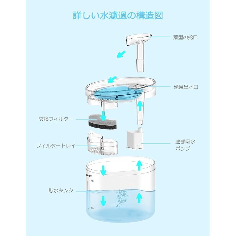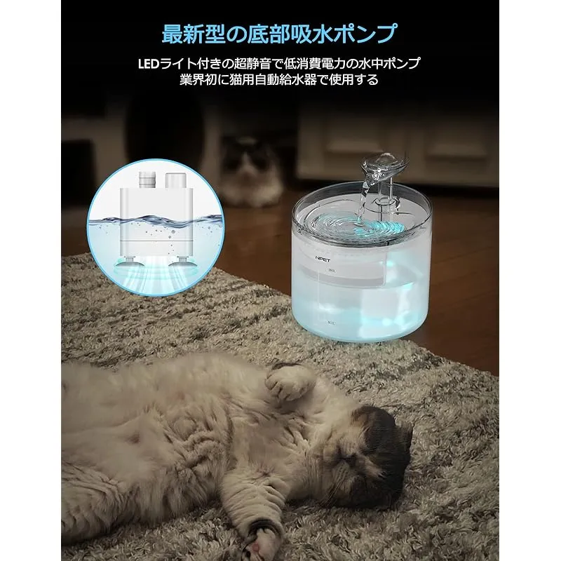 【改良1:底部吸水ポンプ】業界初に猫用自動給水器に底部吸水ポンプを使用して、水の利用率を高くなります 。旧型より、貯水タンクの底部までの水を吸着でき、ほぼ100%貯水タンクの水を利用できます。頻繁的に水を入れる必要がありません。 ??