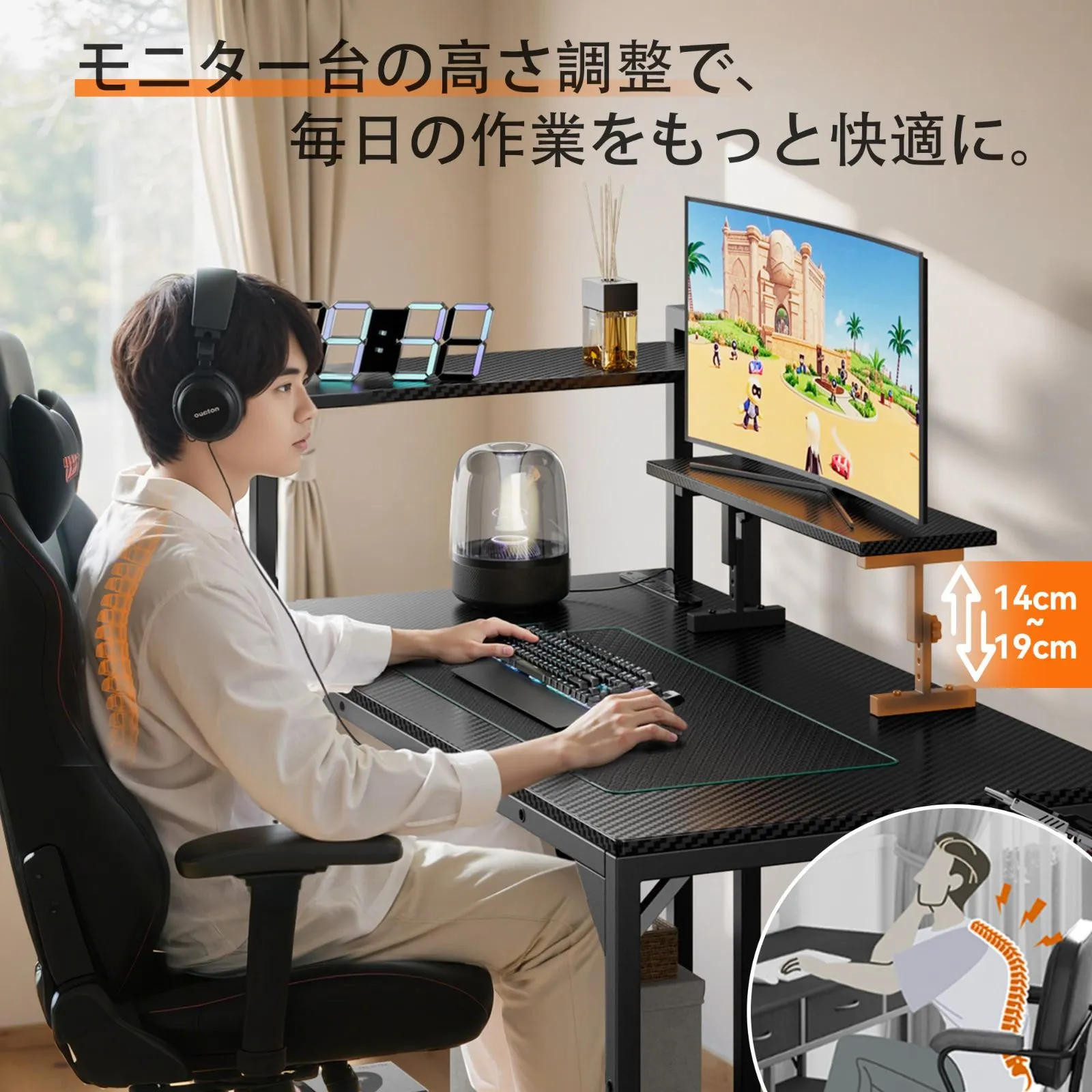 【4段階調整対応のモニター台】ダイヤルを緩めるだけでモニター台の高さを調整でき、家族の異なる身長にも対応可能です。ゲームデスク、ワークデスク、学習机など、さまざまな用途で活躍します。