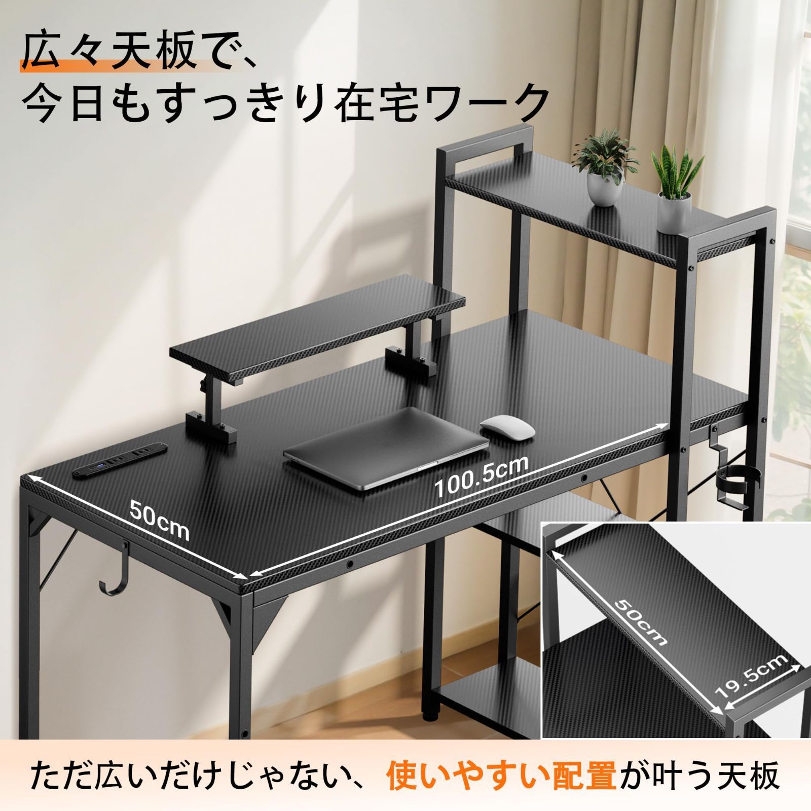 特価商品 desk computer 作業机 学習机 オフィスデスク おしゃれ pcデスク パソコンデスク モニター台付き 組立簡単 収納 棚付き 幅120CM 黒 コンセント付き ゲーミングデスク
