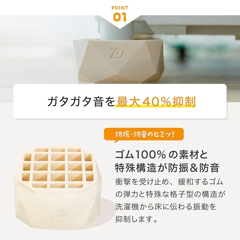 【洗濯機高さ調整・防音/防振かさ上げゴムマット (45)】ゴム製のため、防振・防音効果があります。