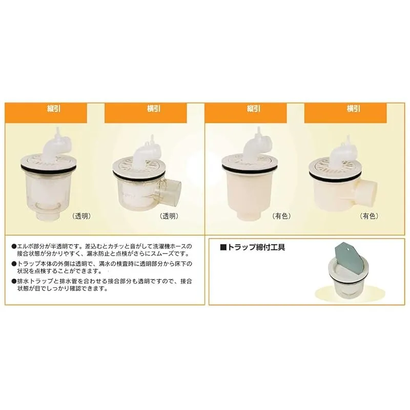 カクダイ 洗濯機パン用縦引トラップ ホワイト 426-154-W 1