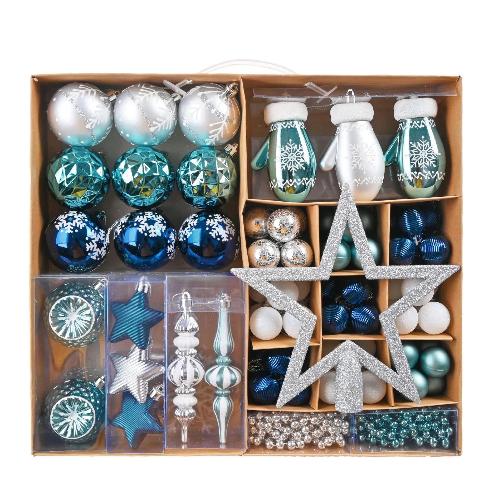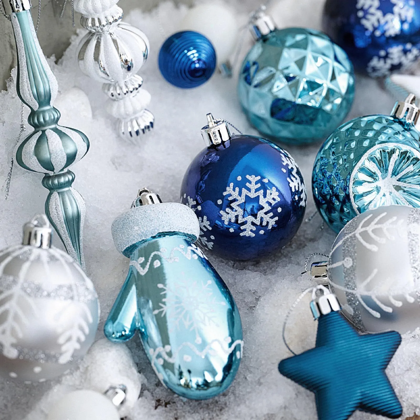 【豊富な選択】クリスマスボールは楽しくエレガントな海のテーマで、球形、星型、冬の手袋などさまざまな形があり、セットの中の各製品はあなたの家庭装飾に豊富な選択を提供します。