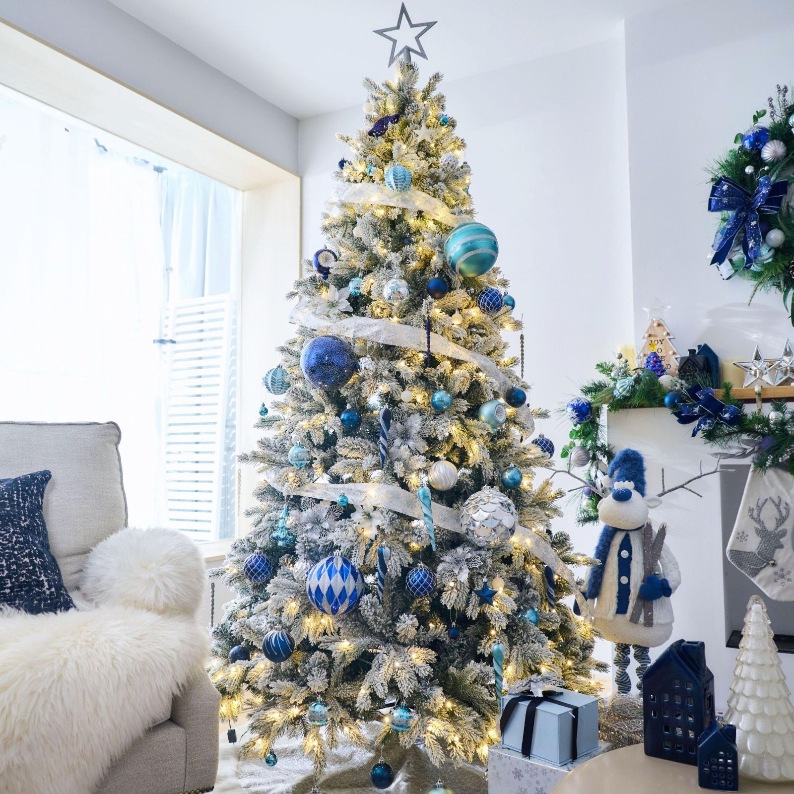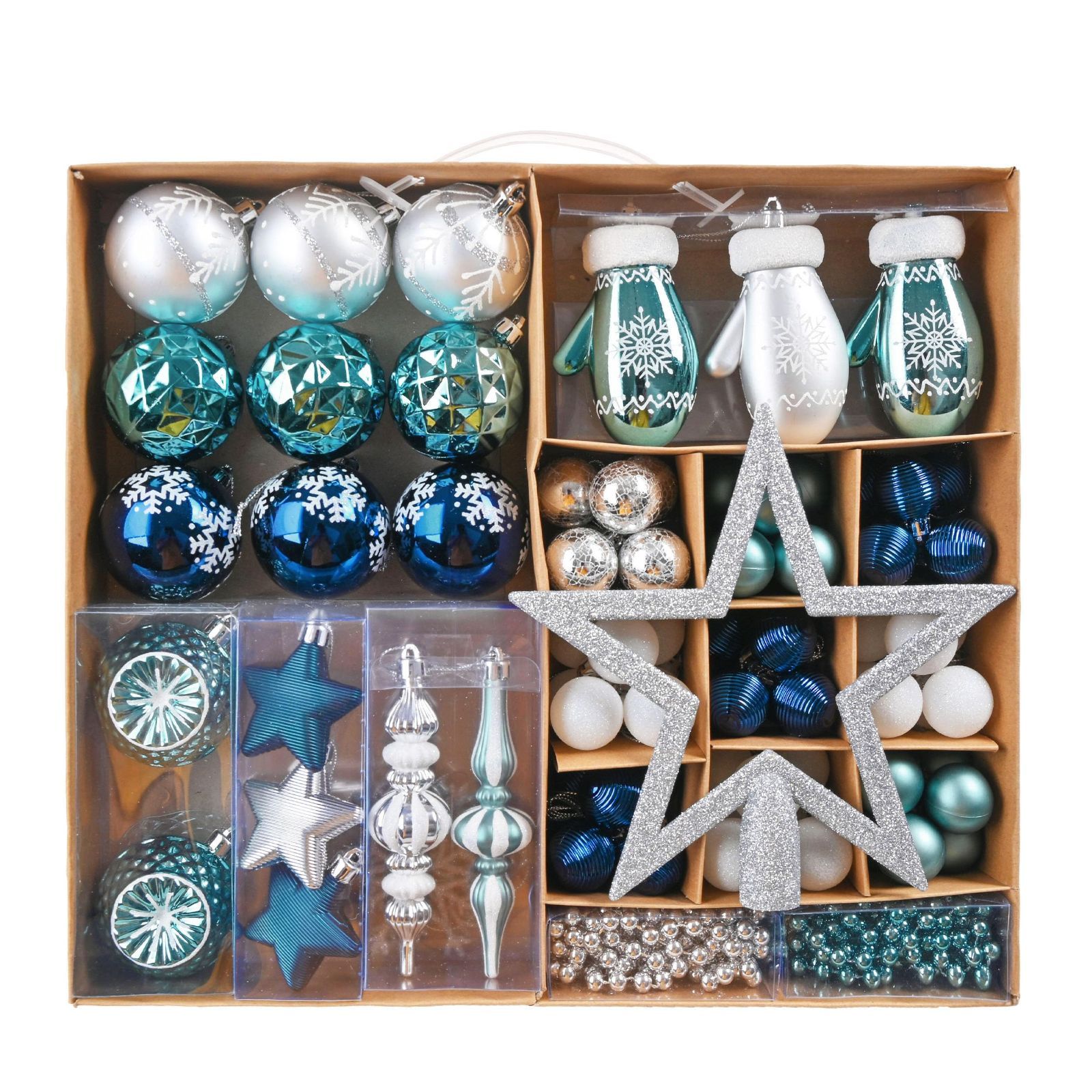 人気商品 ツリー飾り おしゃれ ツリーオーナメント ゴージャス 北欧風 人気 ブルー 流行 シルバー 豪華 銀青色 ロップ付き 飾り付け ボール おしゃれ オーナメント 部屋 クリスマス 店舗 90個セット 家庭用 Madelyn デコレーション Valery