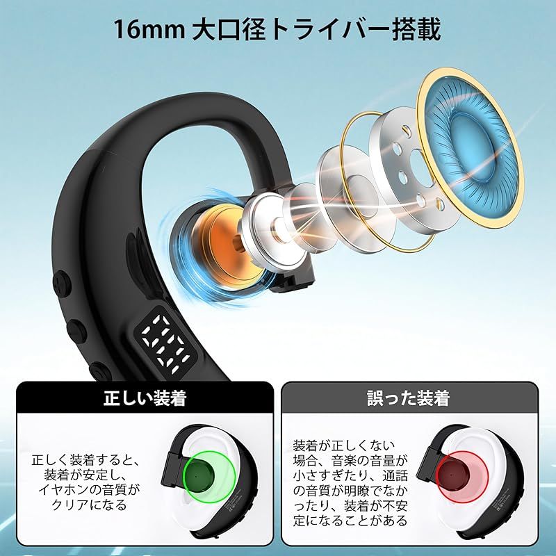 【2024革新Bluetooth5.4&瞬時接続 ブルートゥース イヤホン カタミミ】このイヤホンマイク ブルートゥースは先端なBluetooth 5.4技術を採用し、10以上の範囲で高速と安定した伝送を提供できます。音飛びや音切れがほとんどありません。重要な情報を聞き逃さず、効率的に処理できます。こうすれば、時間を大幅に節約し、面倒な手順を省くことができます。