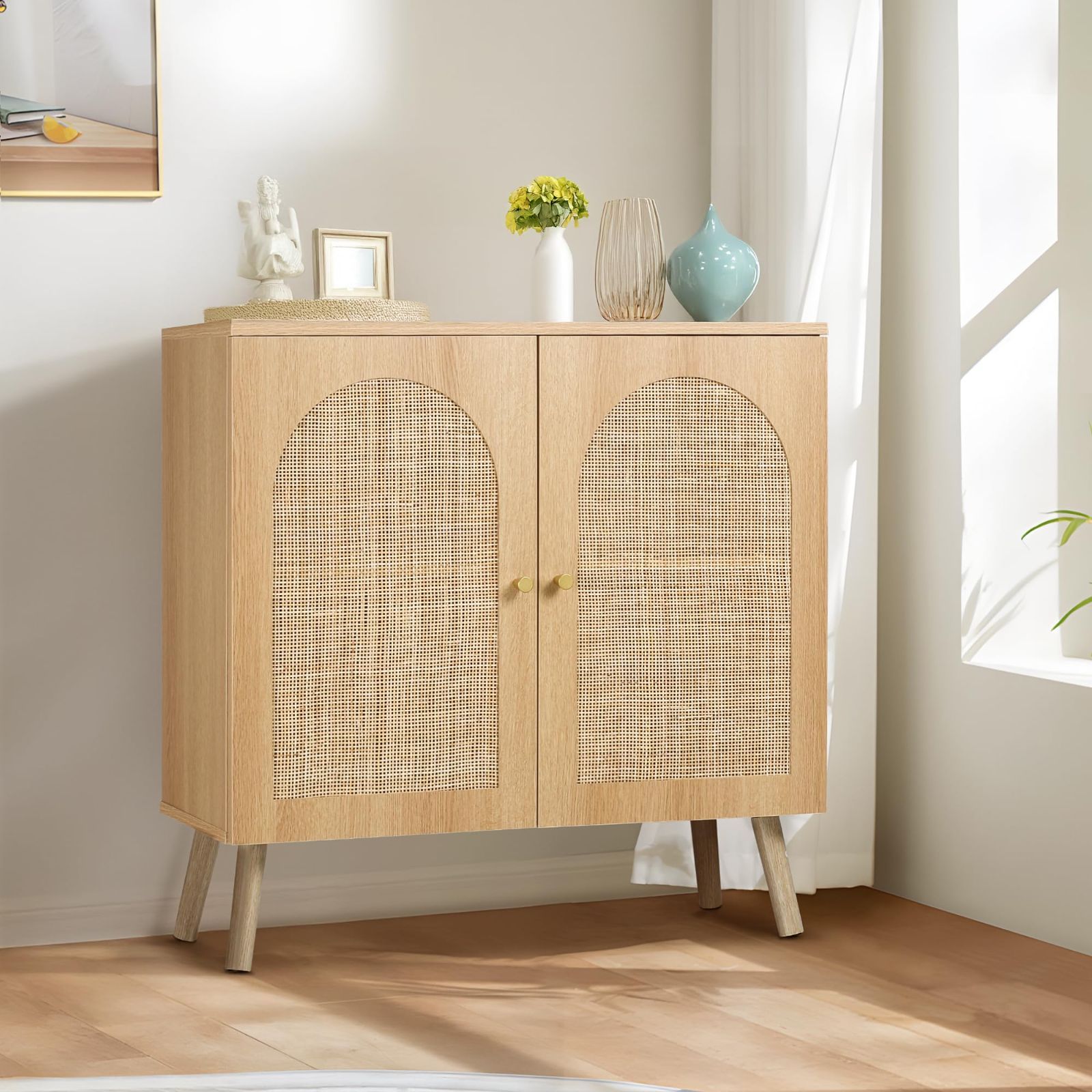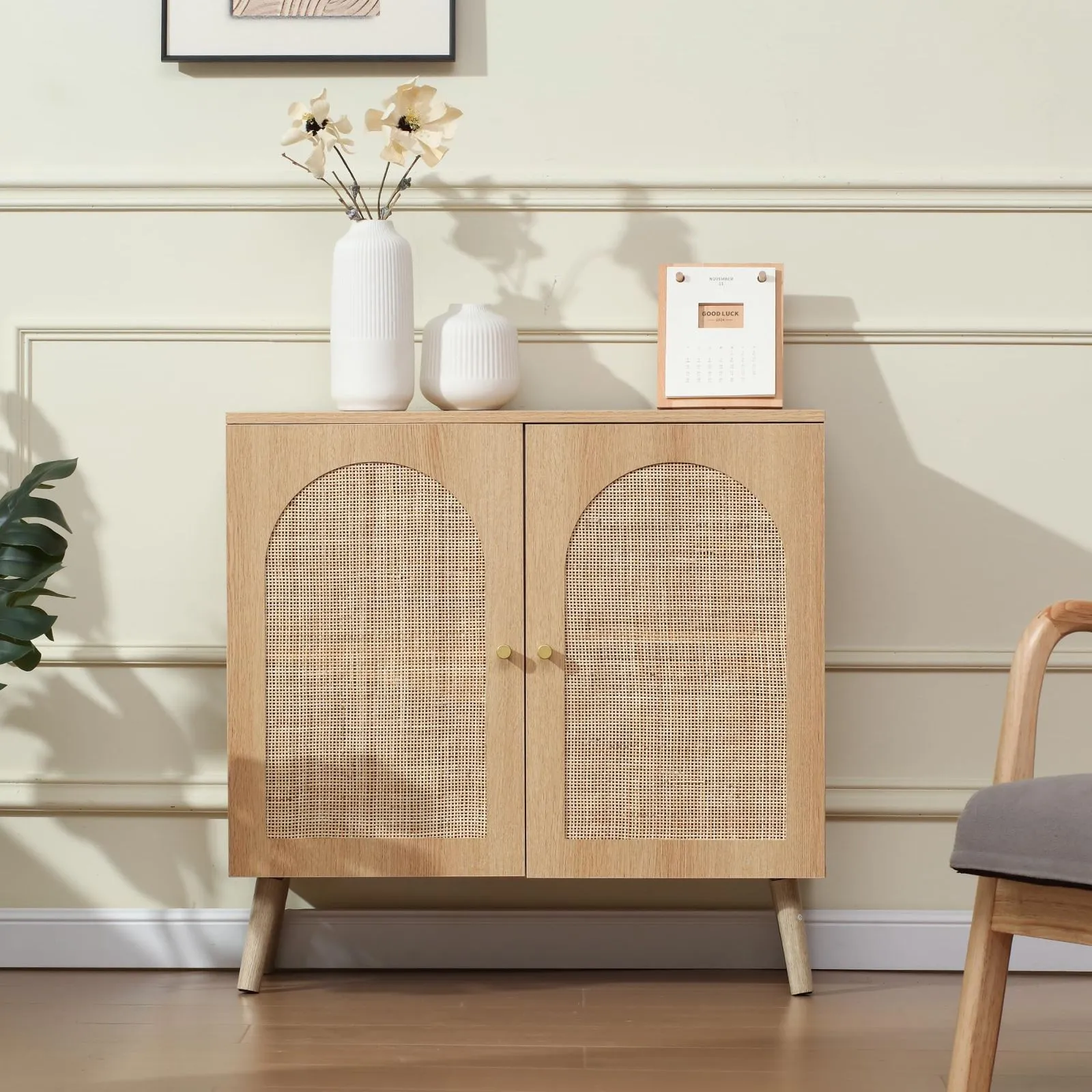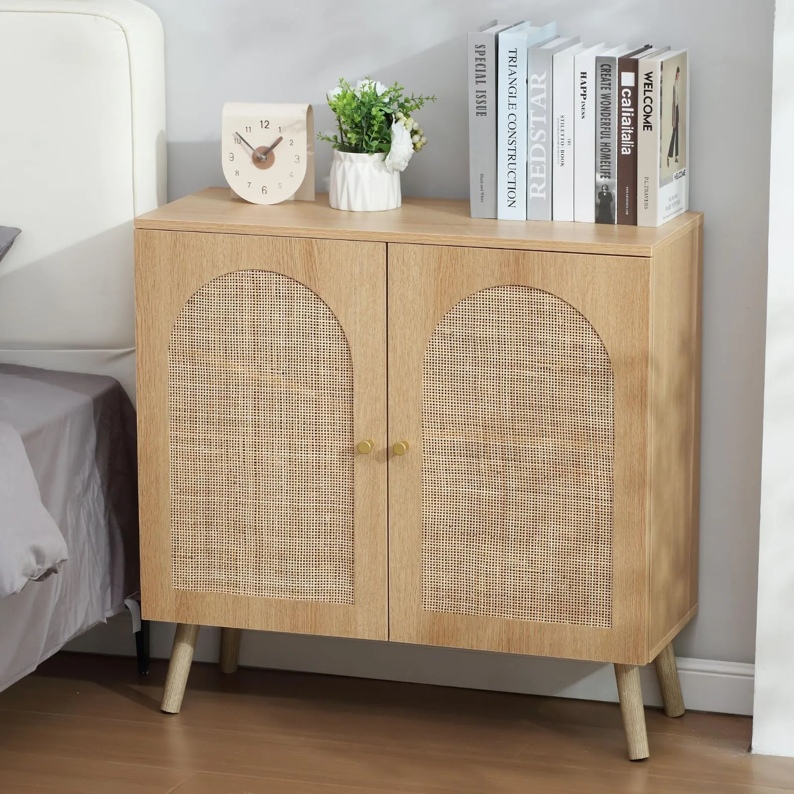 キャビネット サイドボード 収納棚 大容量 リビング ローボード ラタン調 ラタン風 2段 扉付き リビングボード 洋服 タンス 収納 箪笥 リビング ランドリーチェスト 整理タンス 北欧 木目調 おしゃれ