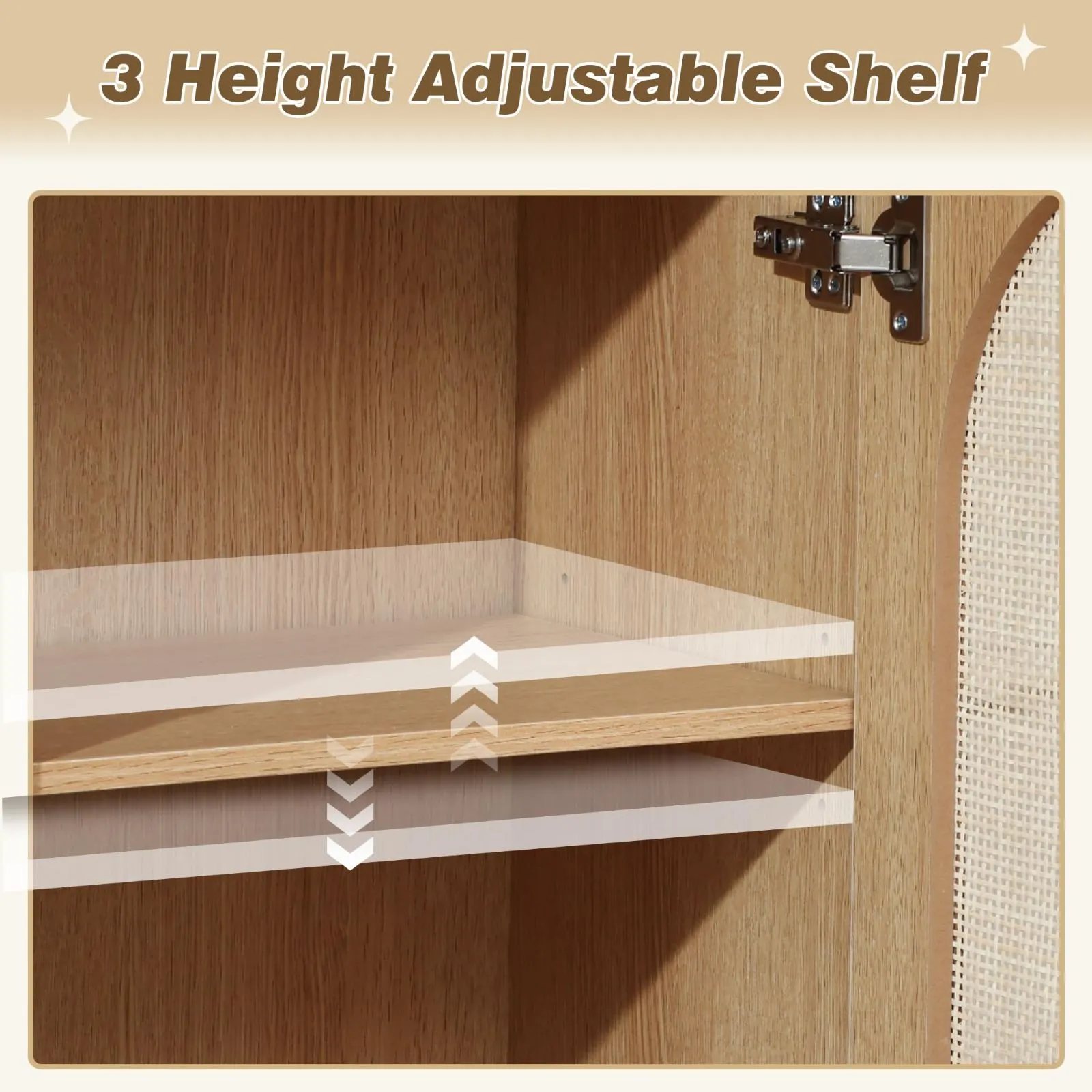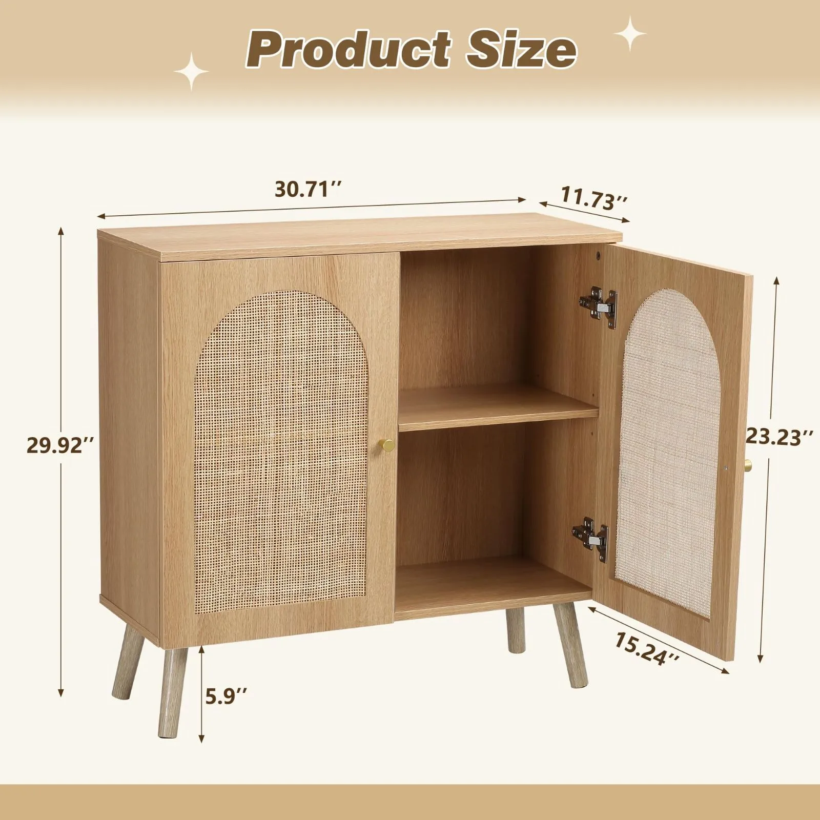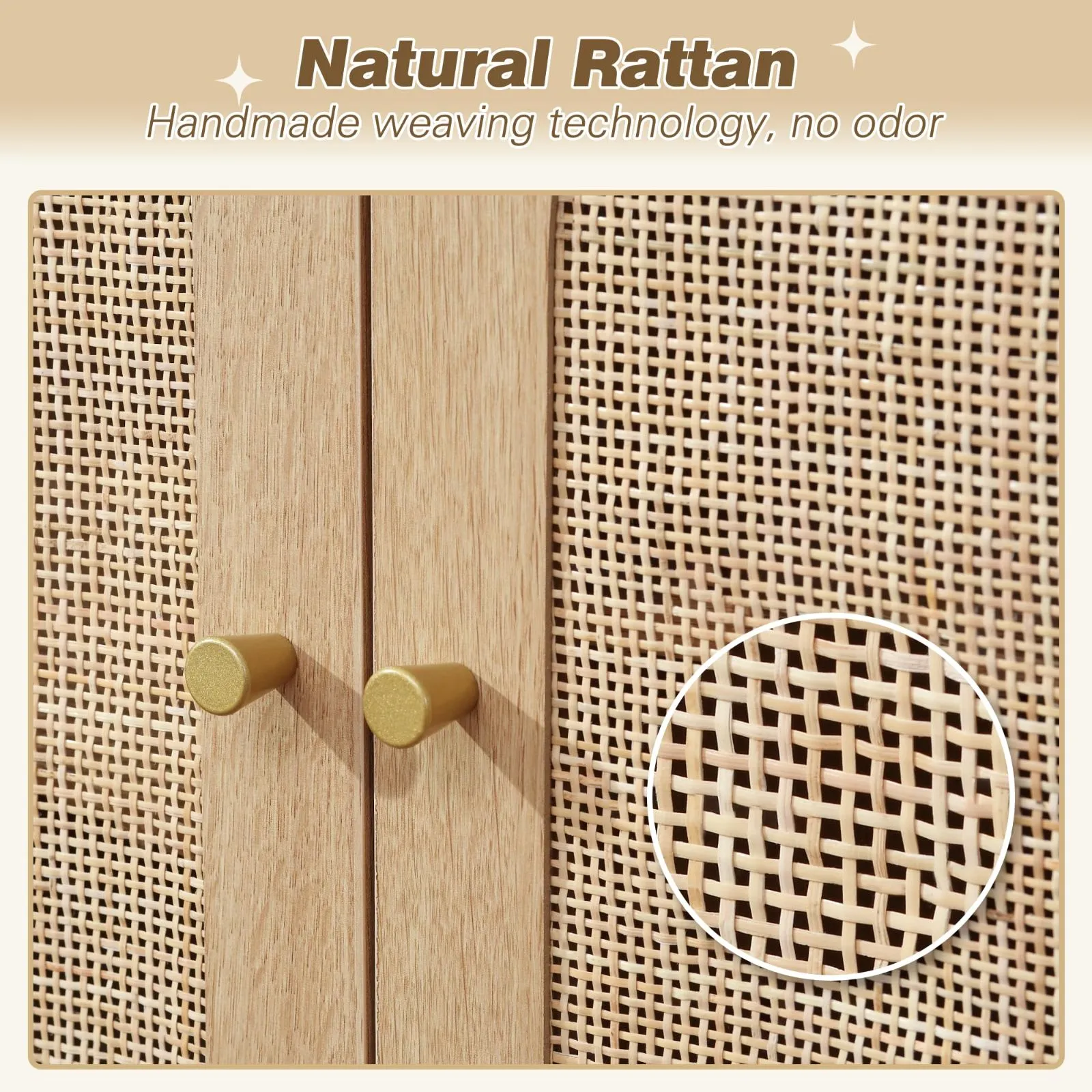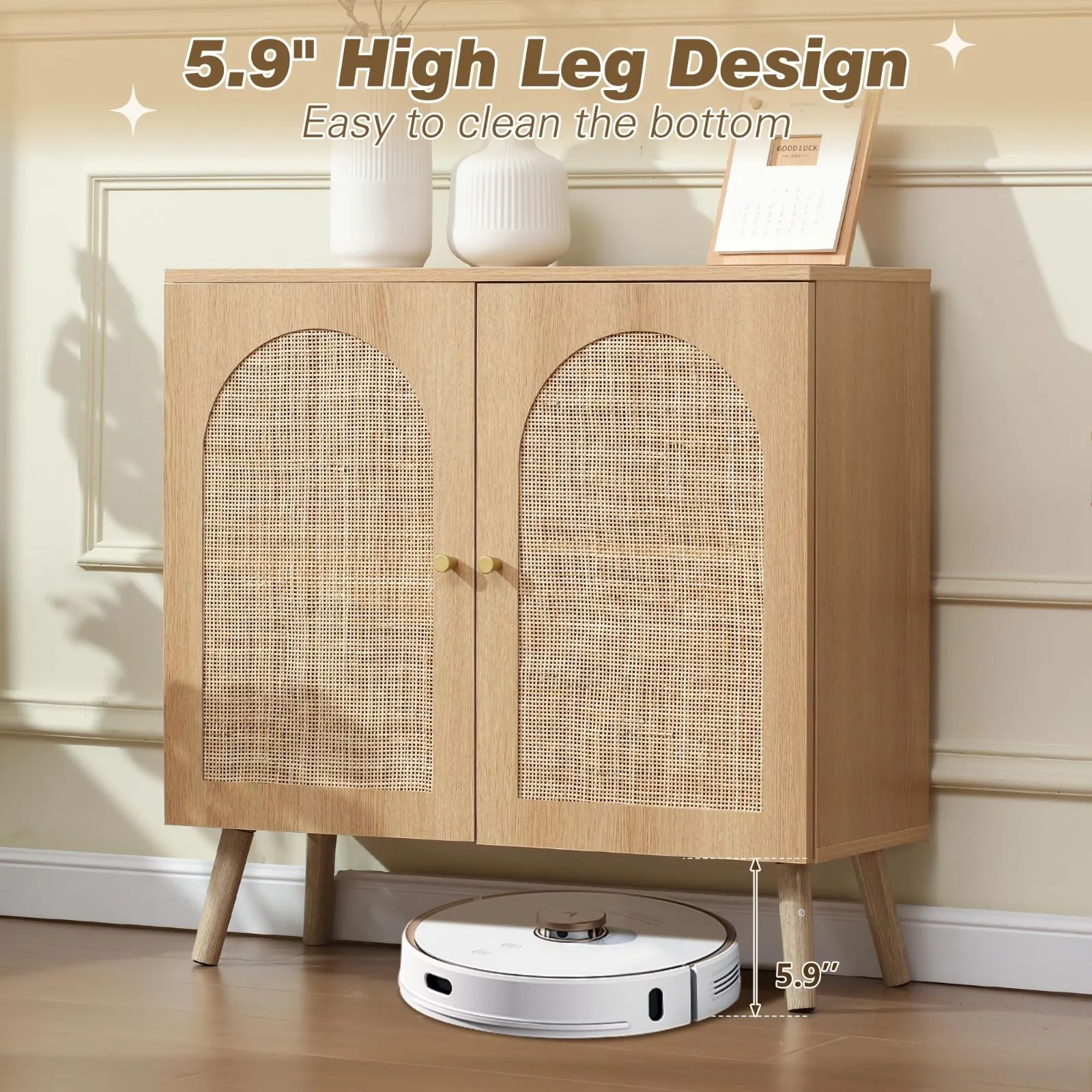 キャビネット サイドボード 収納棚 大容量 リビング ローボード ラタン調 ラタン風 2段 扉付き リビングボード 洋服 タンス 収納 箪笥 リビング ランドリーチェスト 整理タンス 北欧 木目調 おしゃれ