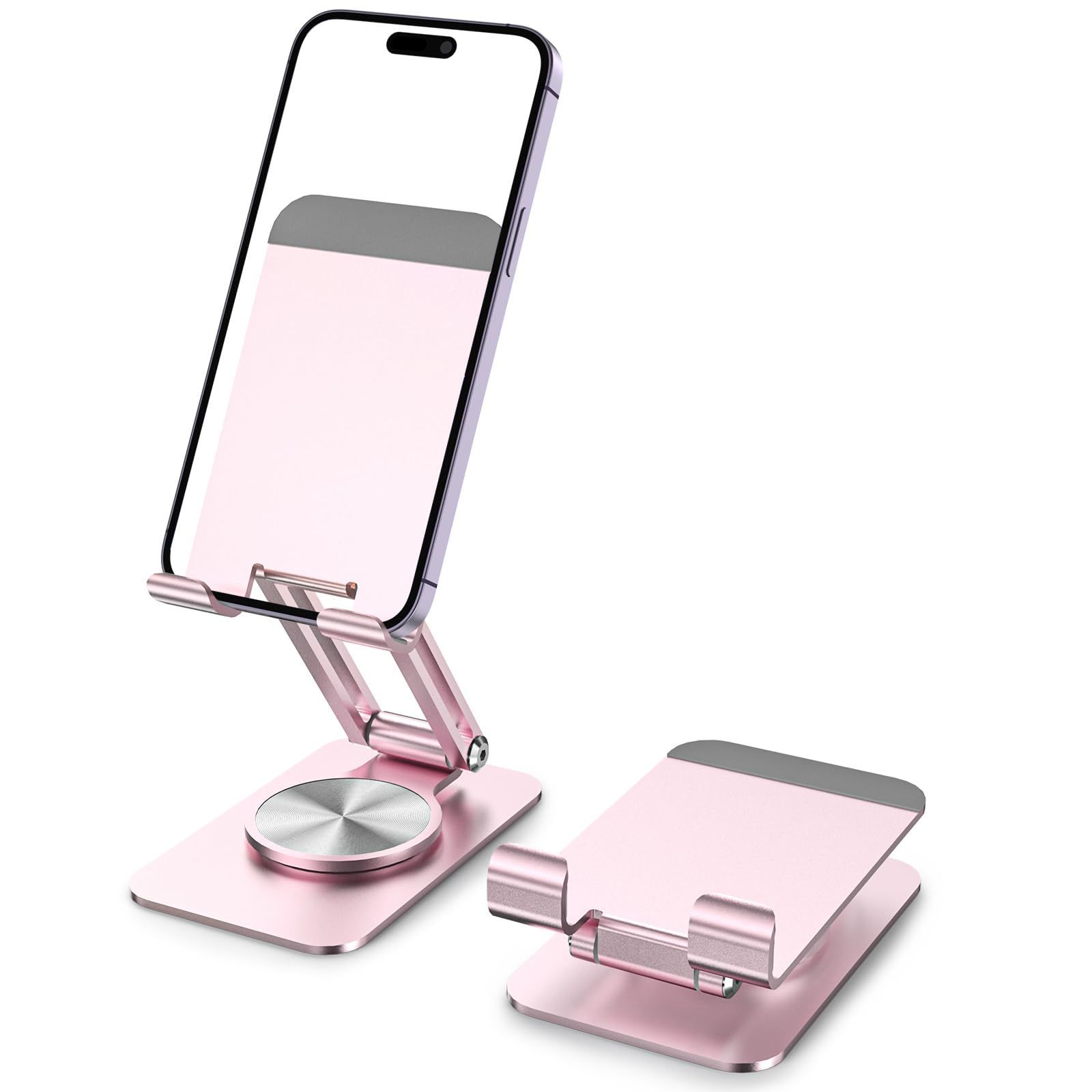 スマホスタンド 携帯スタンド 卓上アルミニウム合金製 無段階360度回転調整 スタンド折りたたみ式 iPhone 16 15 14 plus promax 13 mini プロ マックス se Huawei android に対応 (ピンク)