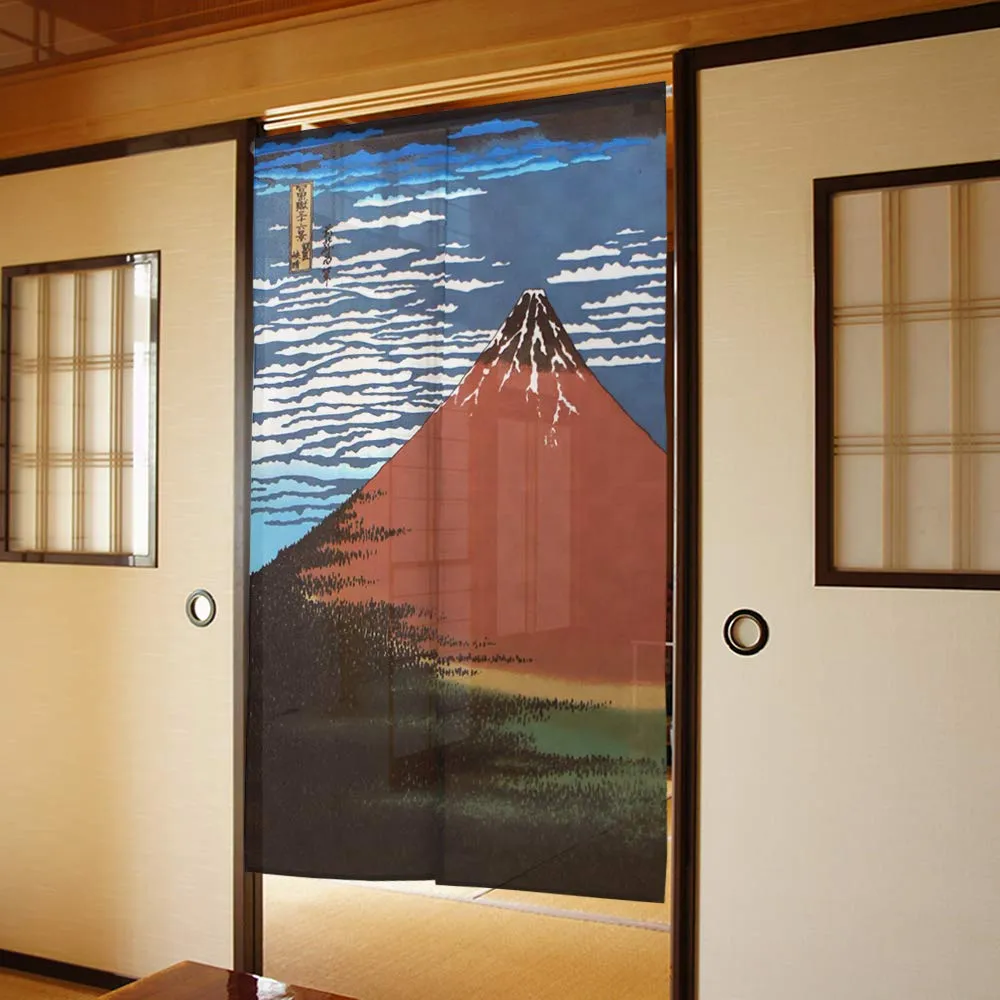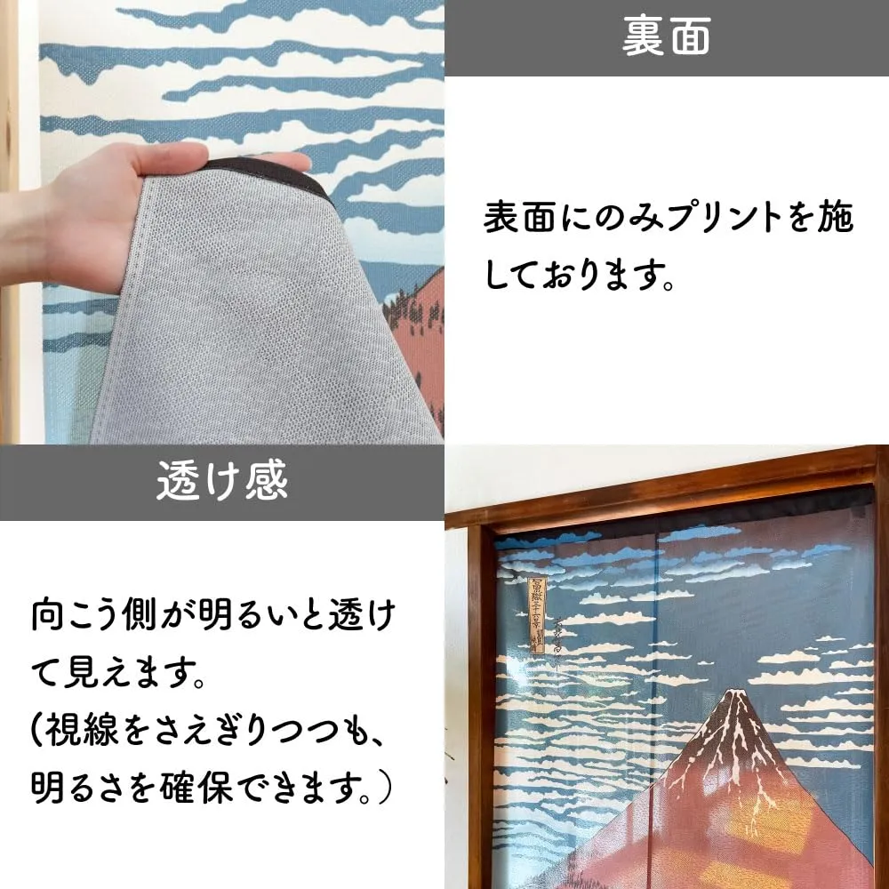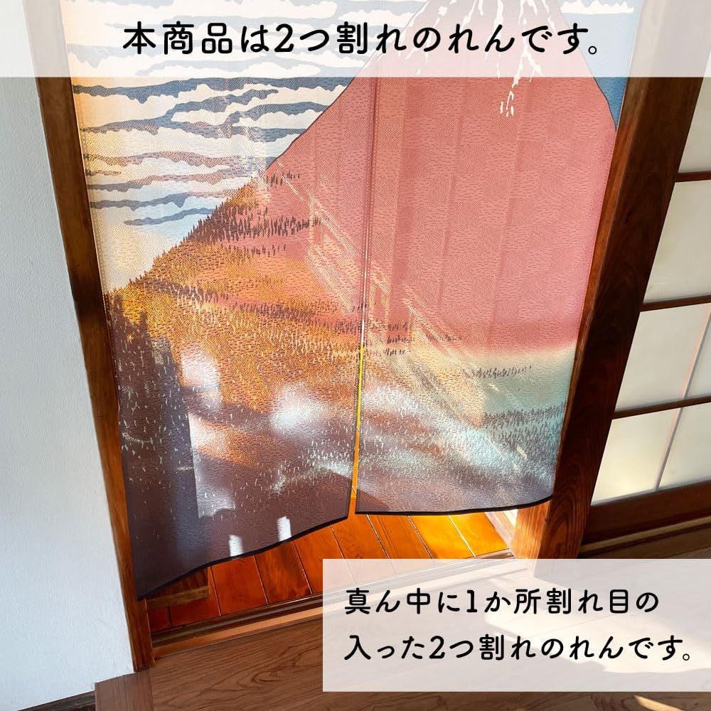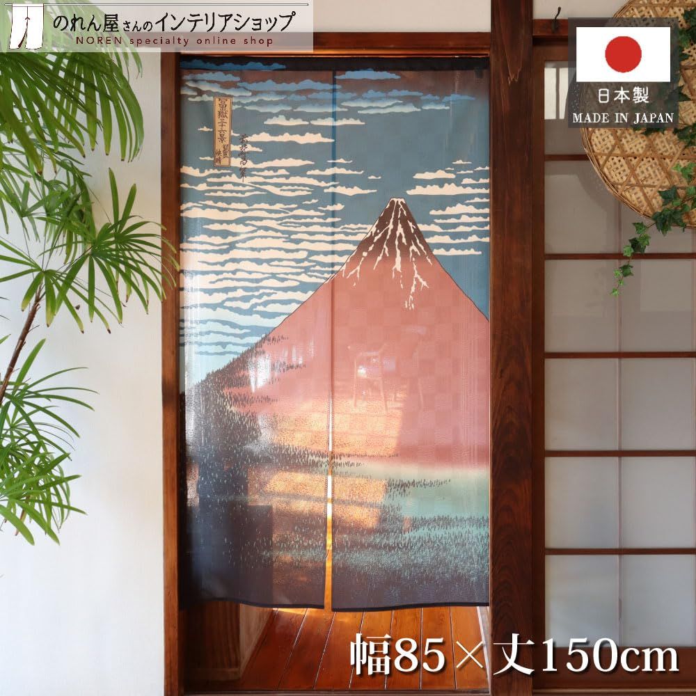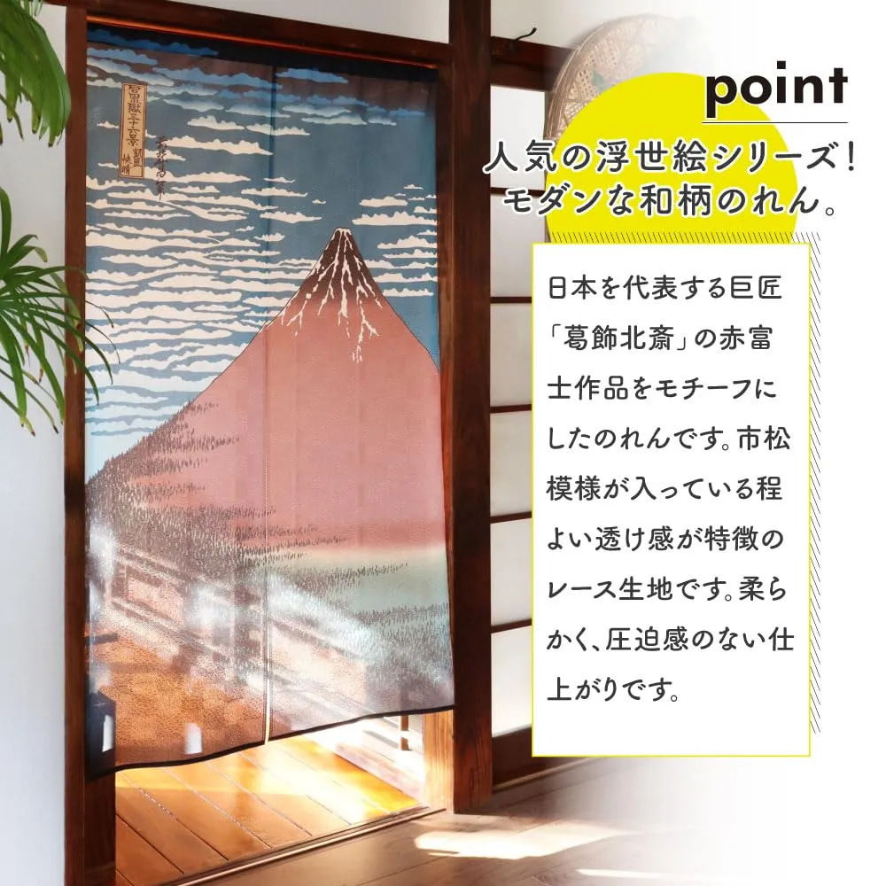 のれん工房 のれん 浮世絵 和風 タペストリー半間のれん 伝統 北斎 幅85×丈150cm 赤富士 レース生地 2000 [赤富士]