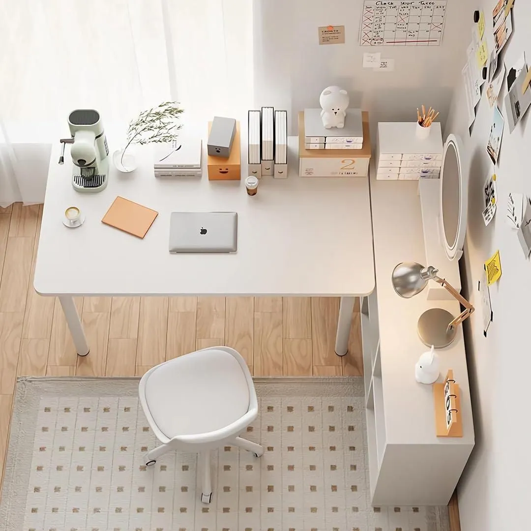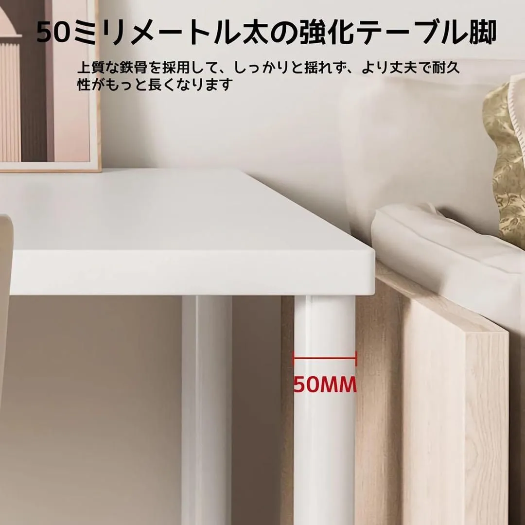デスク 机 pcデスク 勉強机 幅100*奥行50cm 天板厚さ2.5cm 桌子 ゲーミングデスク パソコンデスク desk 在宅ワーク おしゃれ シンプル 化粧台 作業机 組立簡単 (ホワイト, 100*50cm)