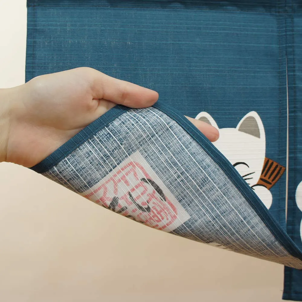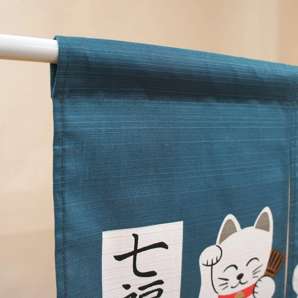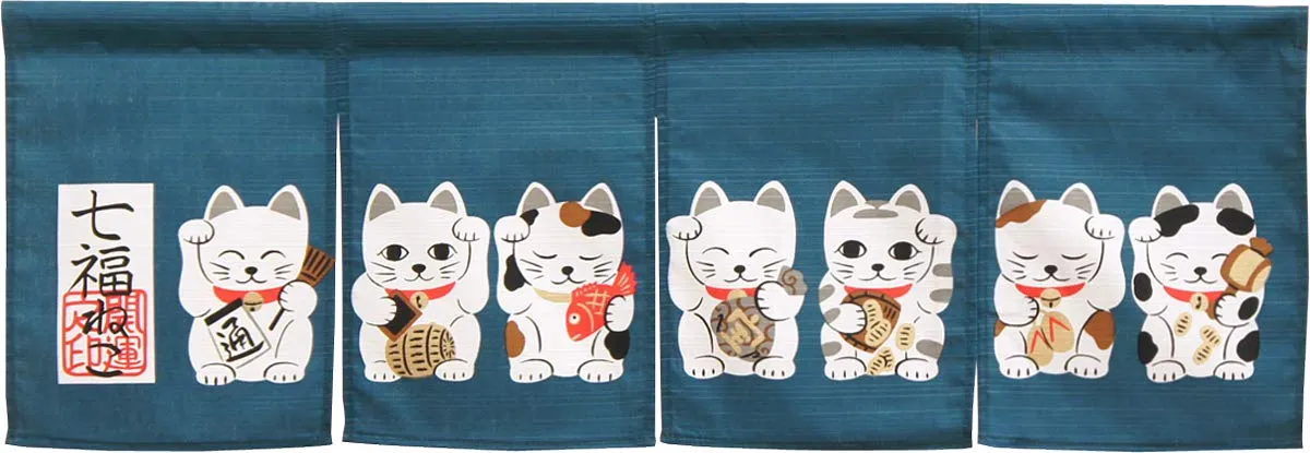【特徴】縁起のれんの定番、人気の七福猫をモチーフにしたとても可愛いのれんです。海外のお土産、プレゼントにも喜ばれます。のれん、間仕切り、壁掛け、タペストリー、目隠し、他いろいろなシーンでお使い頂けます。お部屋のインテリアとしてはもちろん、飲食店、居酒屋等の商業施設によく合うのれんです。