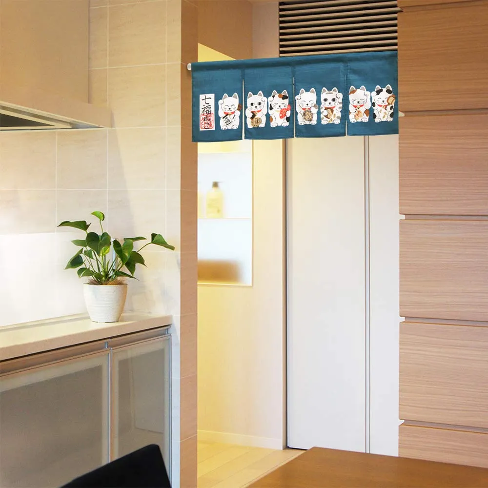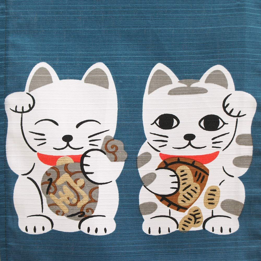のれん工房 のれん 和柄 猫 幅85×丈30cm 招き猫 縁起物 ショート丈 七福ネコ ネイビー 3012 [ネイビー] [長さ30 cm x 幅85 cm]