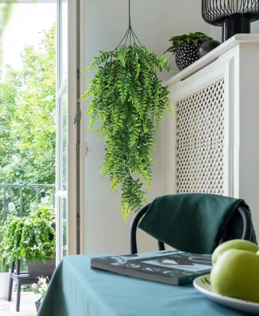 【概要・仕様】人工ボストンシダの2個・4個セットです。全長は約78cm 。重さは約70g。 根元で枝が5本に分かれています。何箇所にも分けて使え、何本か合わせて飾り付けるとより雰囲気を出すことができます。1個でもいい感じですが、複数個並べて使うとお洒落で存在感が際立ちます。水やりや掃除の手間も枯れることもなく、虫も寄り付きません。年中グリーンを楽しめるので、常に爽やかな緑をお楽しみいただけます。玄関やトイレ、リビングなどの窓辺などに、インテリア装飾、デコレーションとしてお使いいただけます。