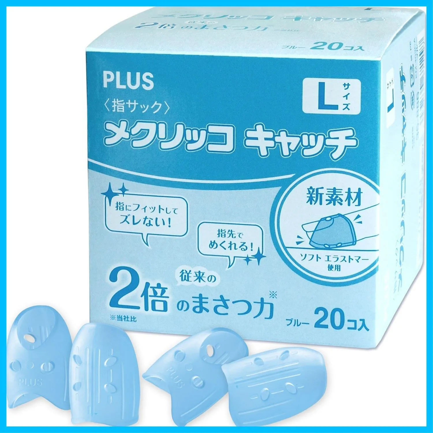 プラス 紙めくり 指サック リング型 メクリッコキャッチ Lサイズ 20個入り ブルー 35-886
